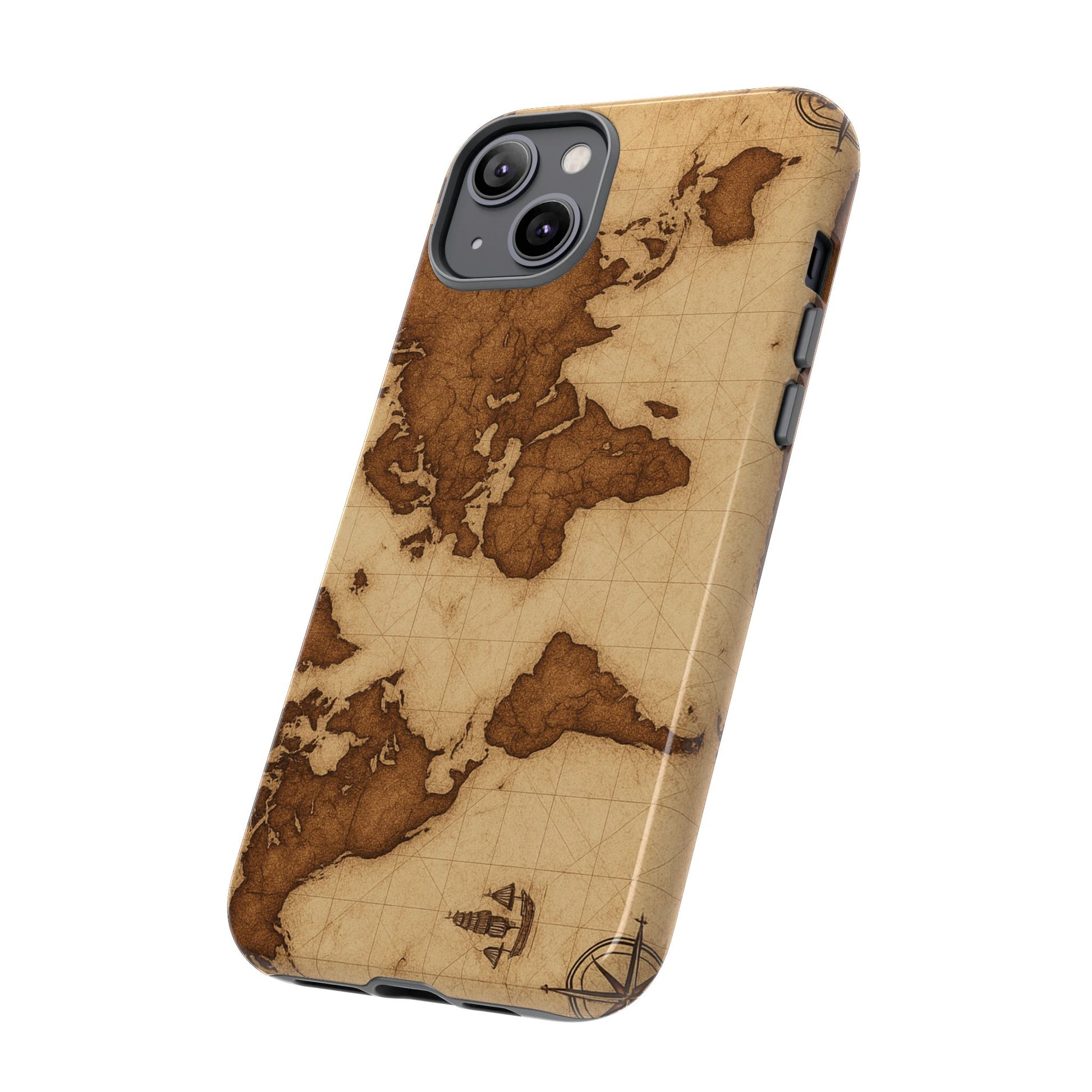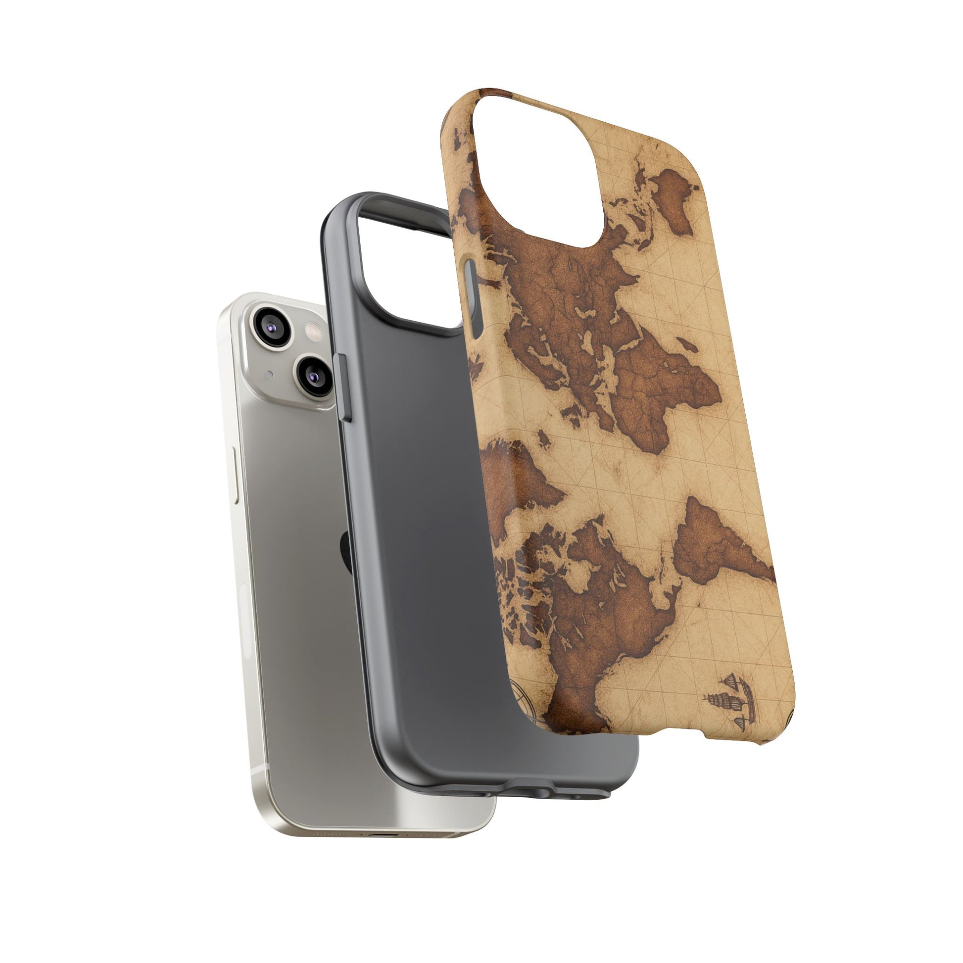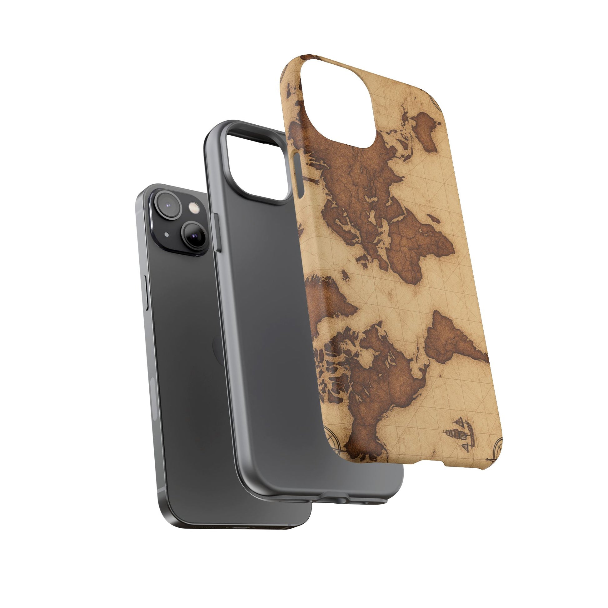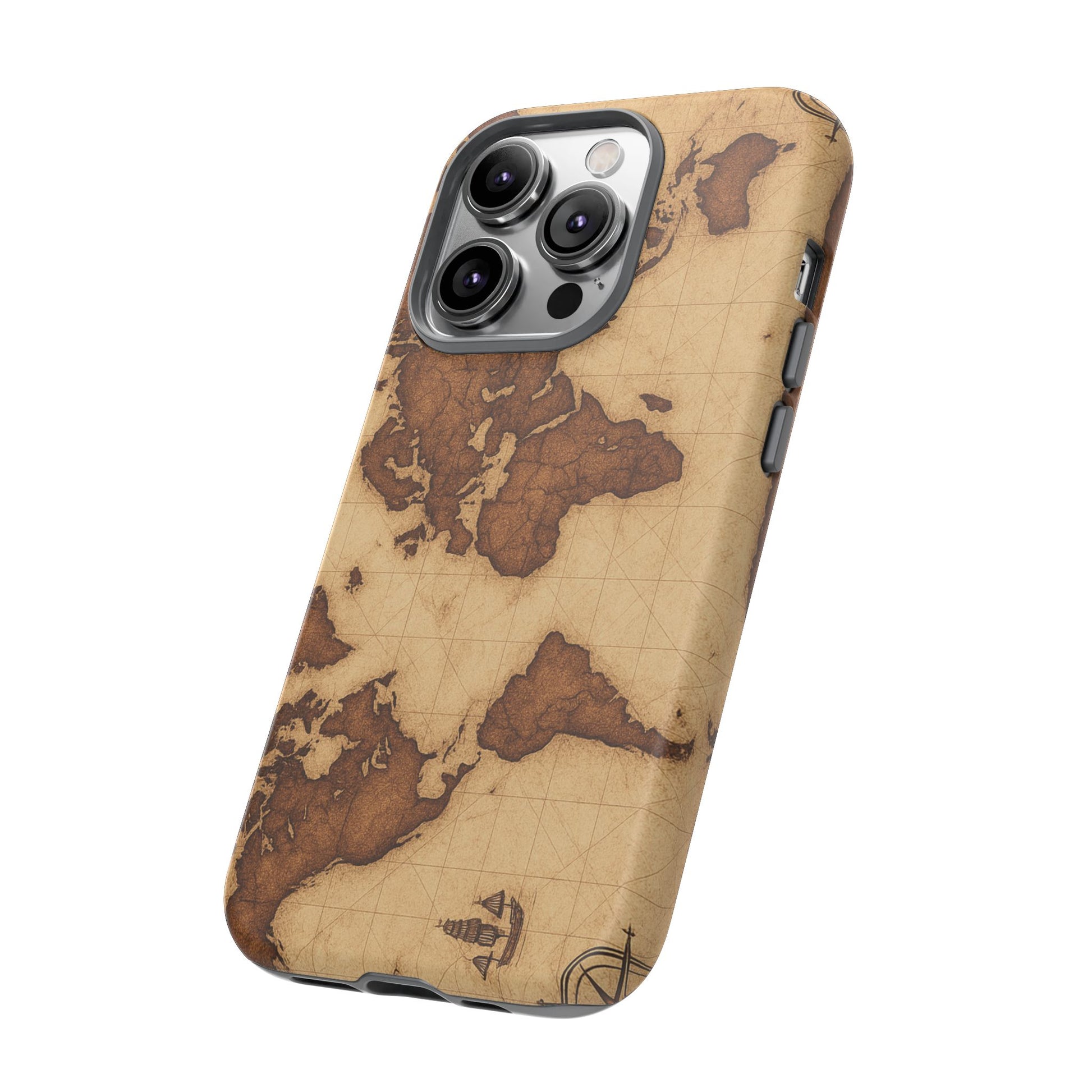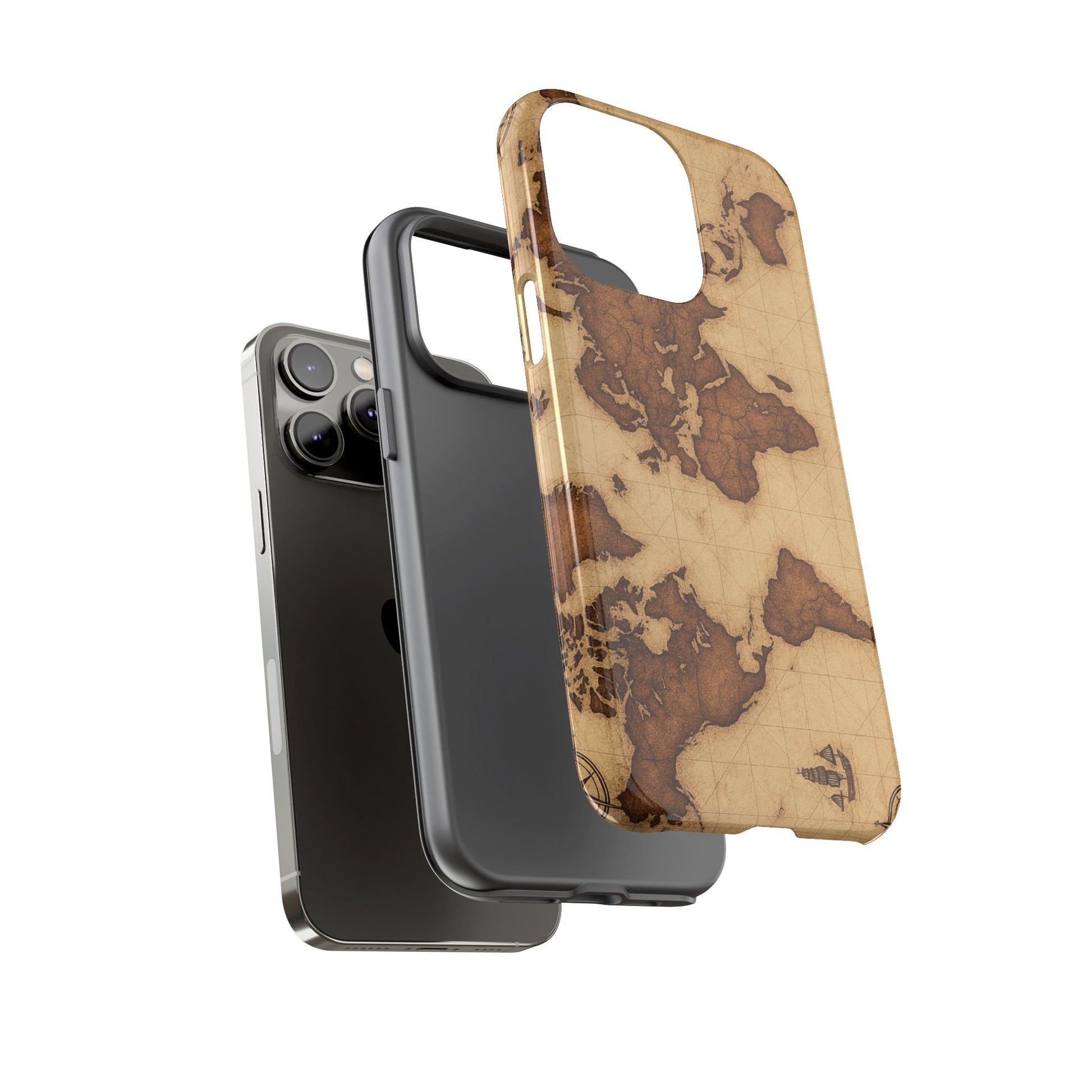 A phone case featuring a detailed world map design, perfect for travel enthusiasts and geography lovers. This durable and impact resistant case offers excellent protection against drops and tears, with a TPU silicone liner for shock absorption. Ideal for adults looking to protect their phones in style, this case is a great gift for birthdays, holidays, or as a treat for yourself.