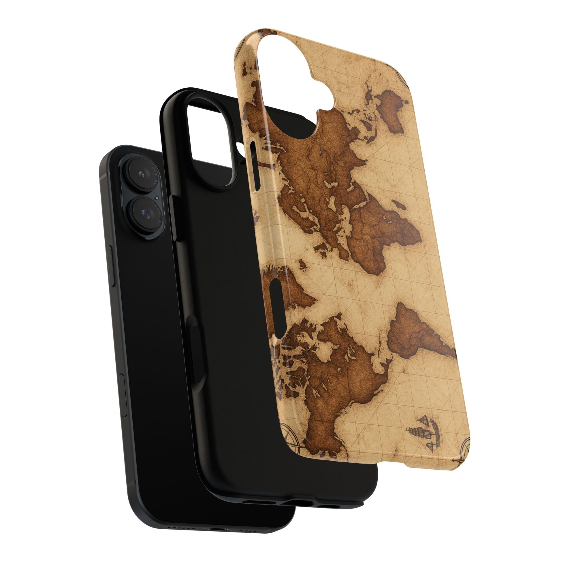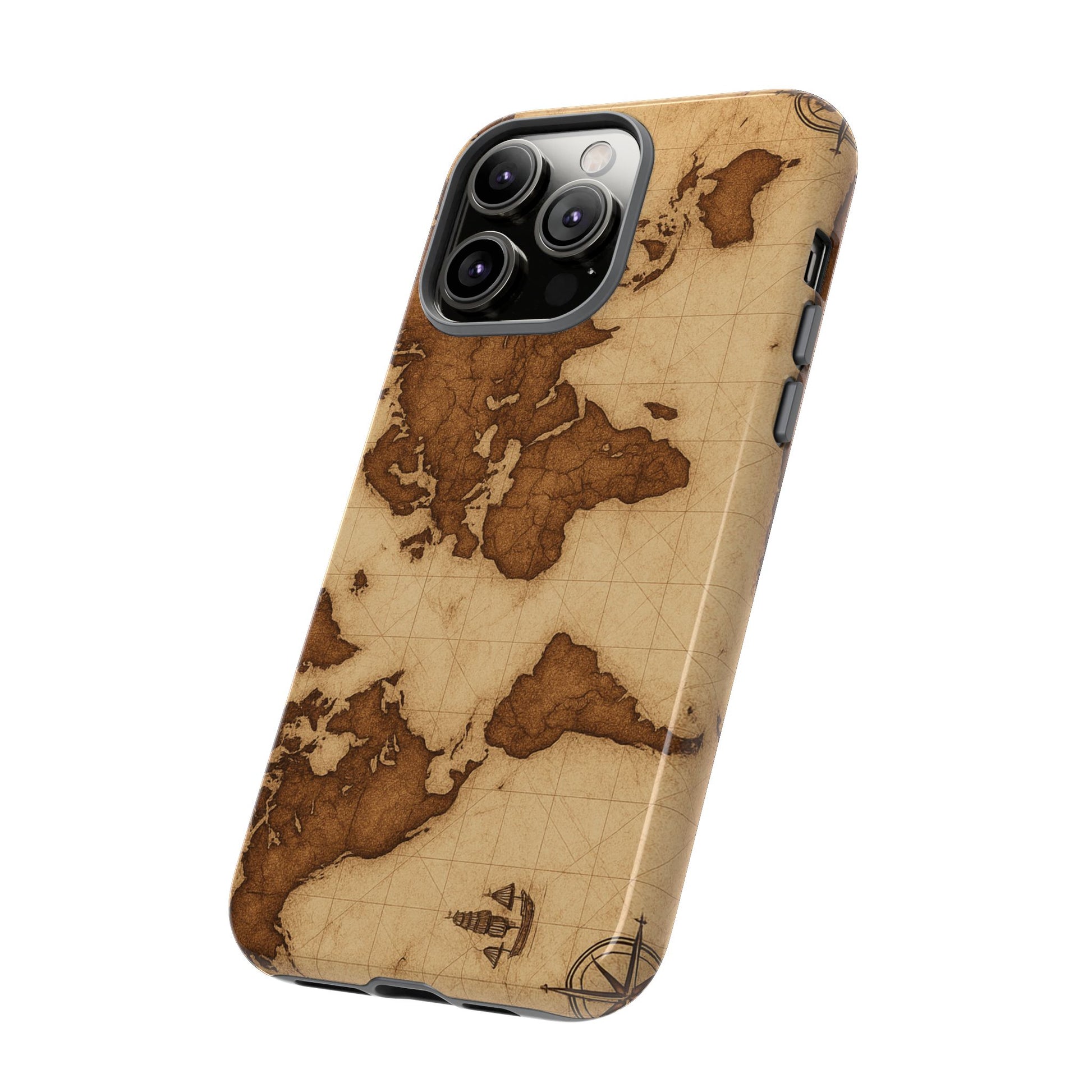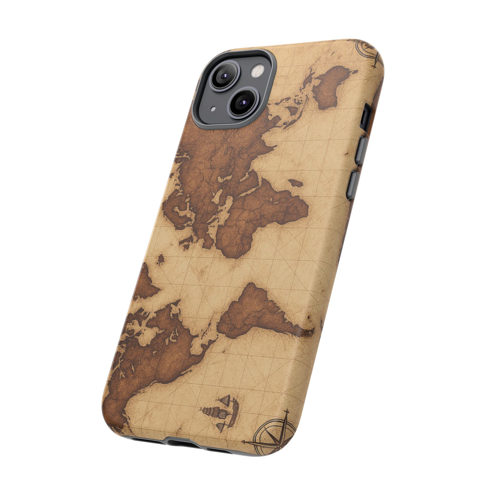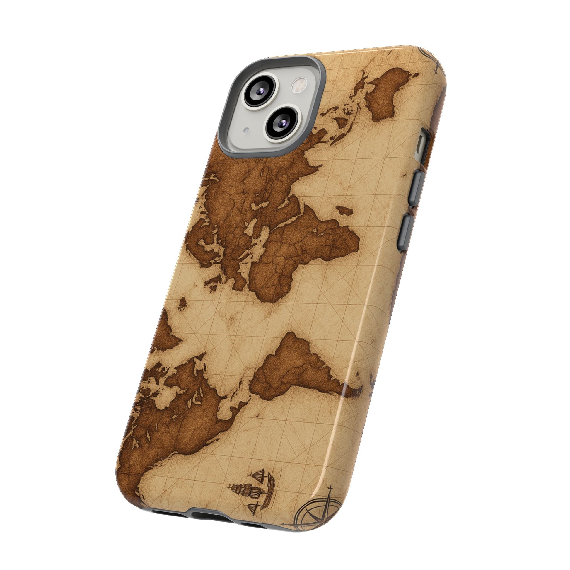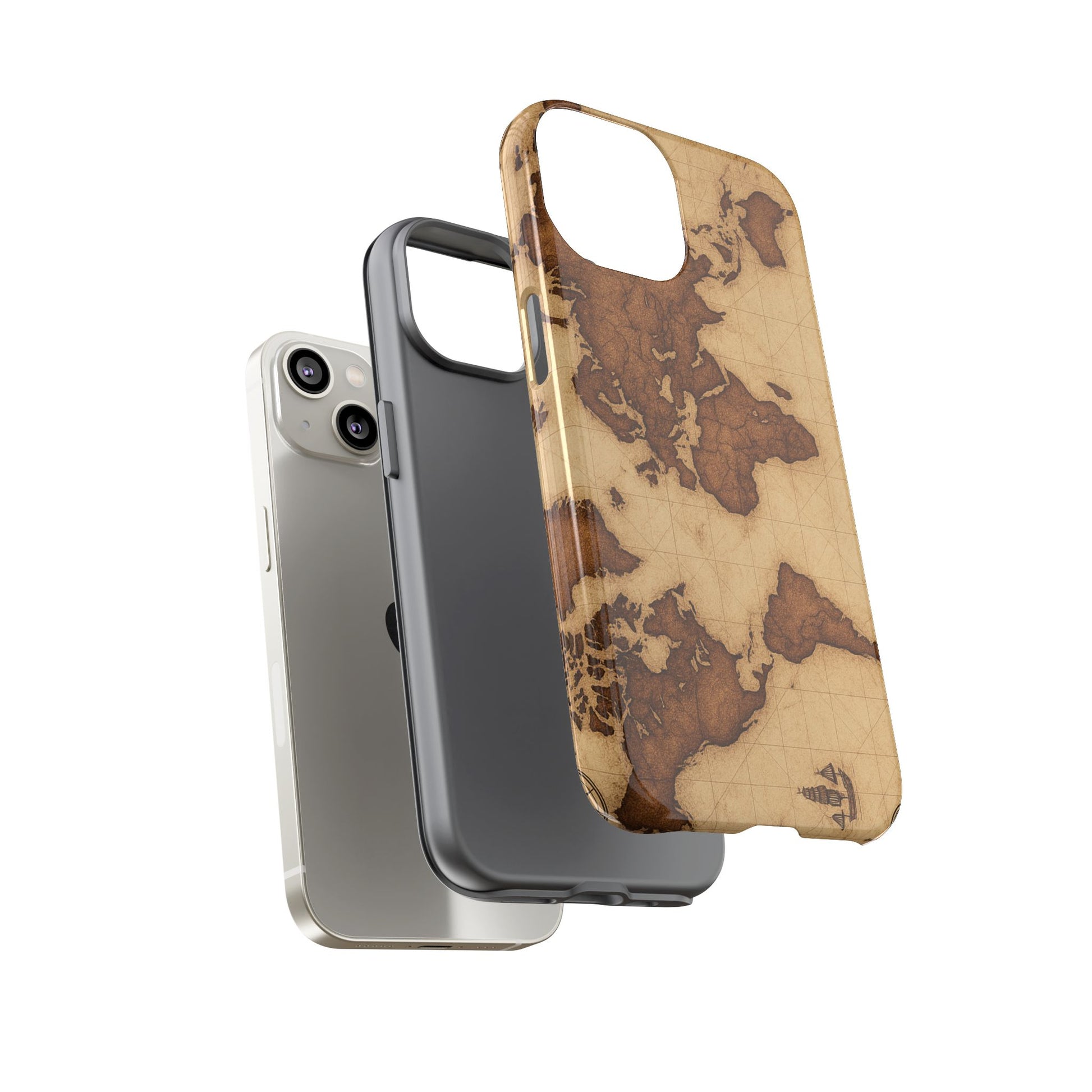 A phone case featuring a detailed world map design, perfect for travel enthusiasts and geography lovers. This durable and impact resistant case offers excellent protection against drops and tears, with a TPU silicone liner for shock absorption. Ideal for adults looking to protect their phones in style, this case is a great gift for birthdays, holidays, or as a treat for yourself.