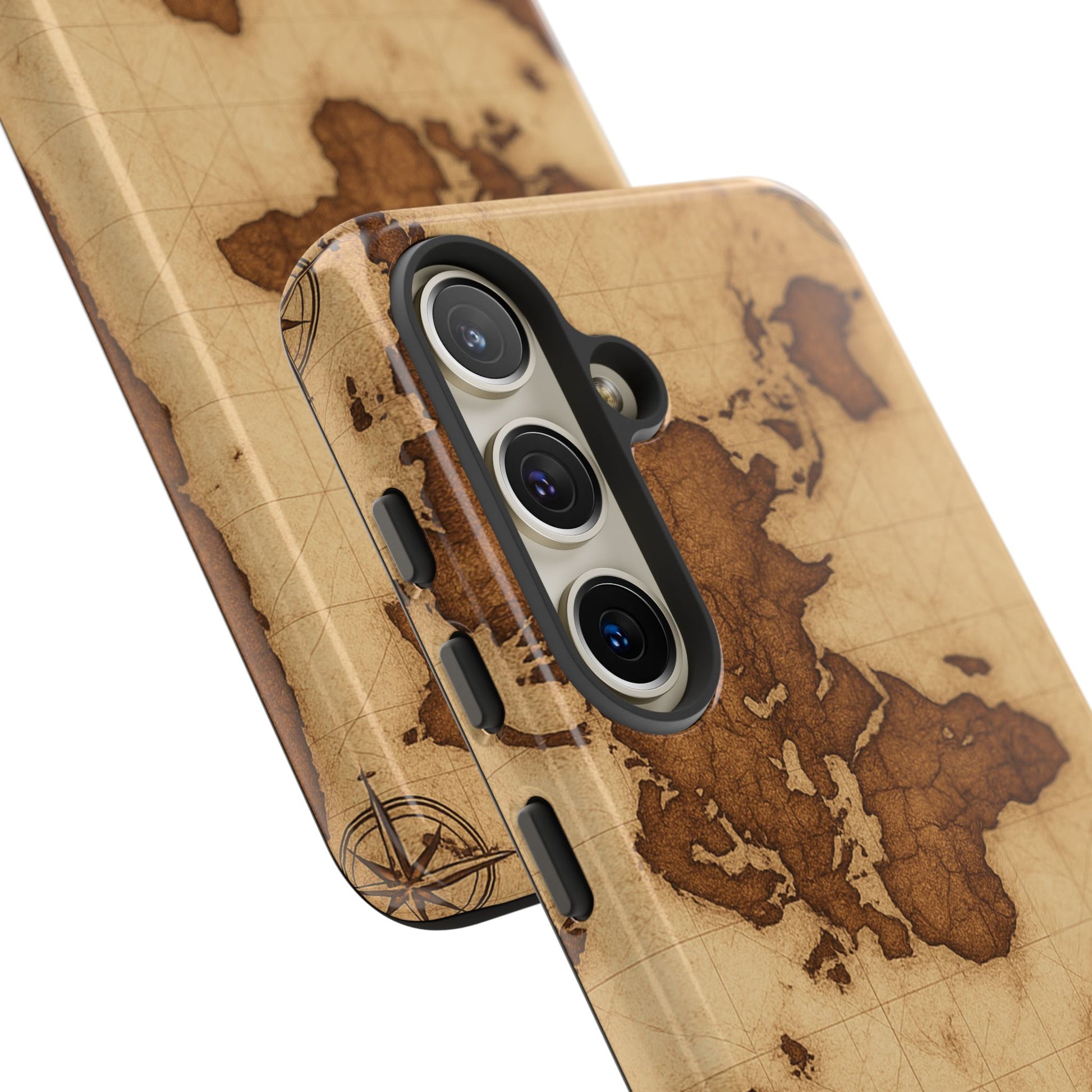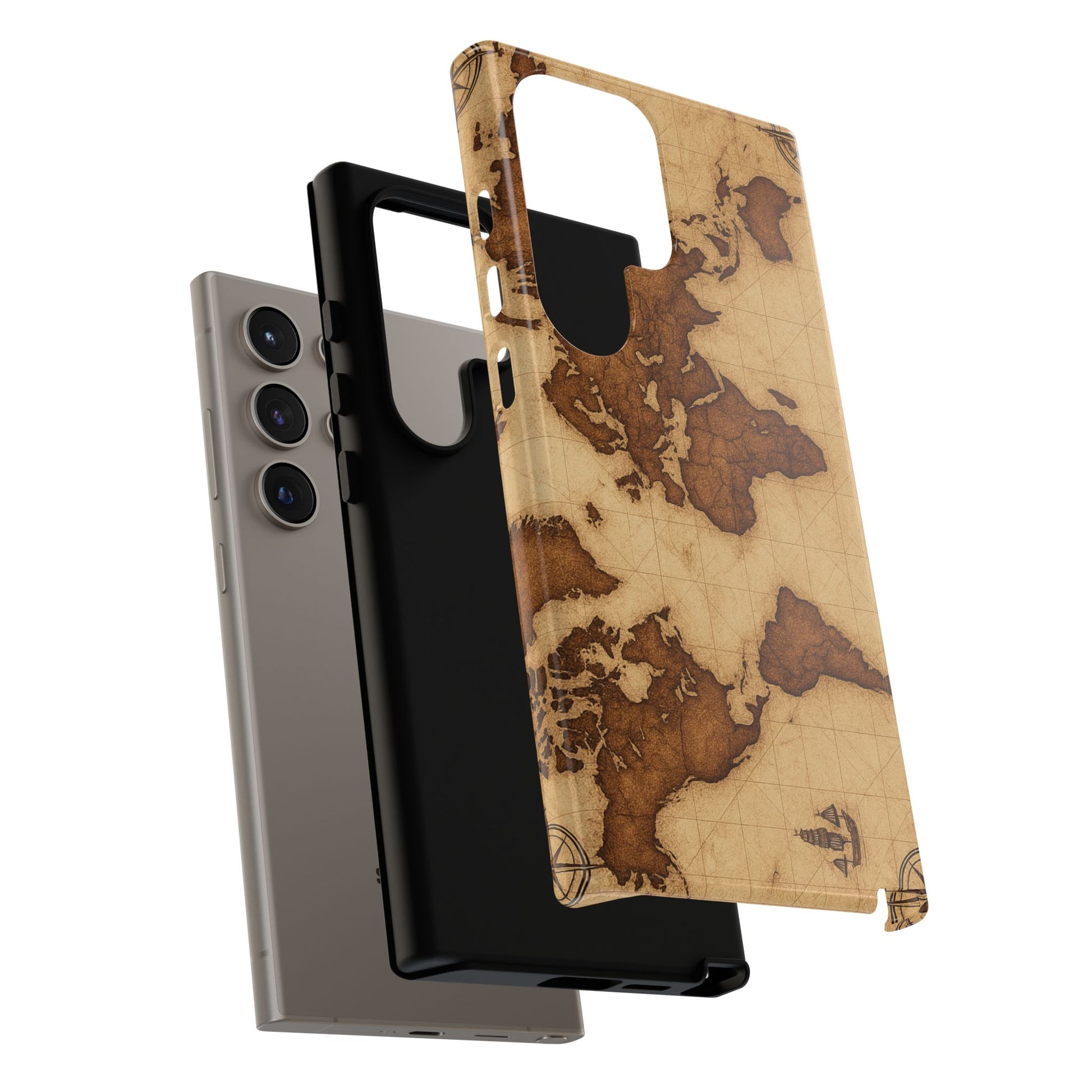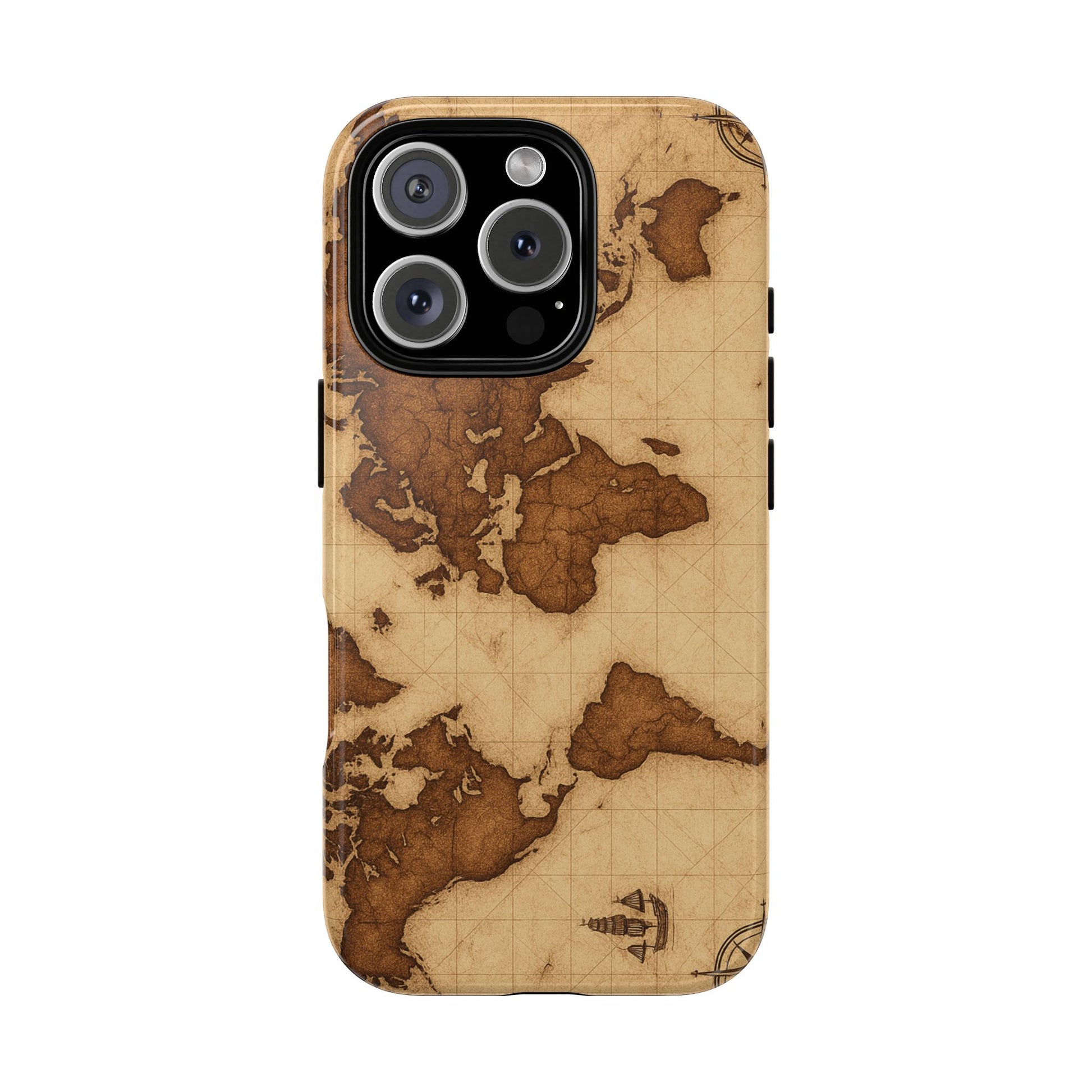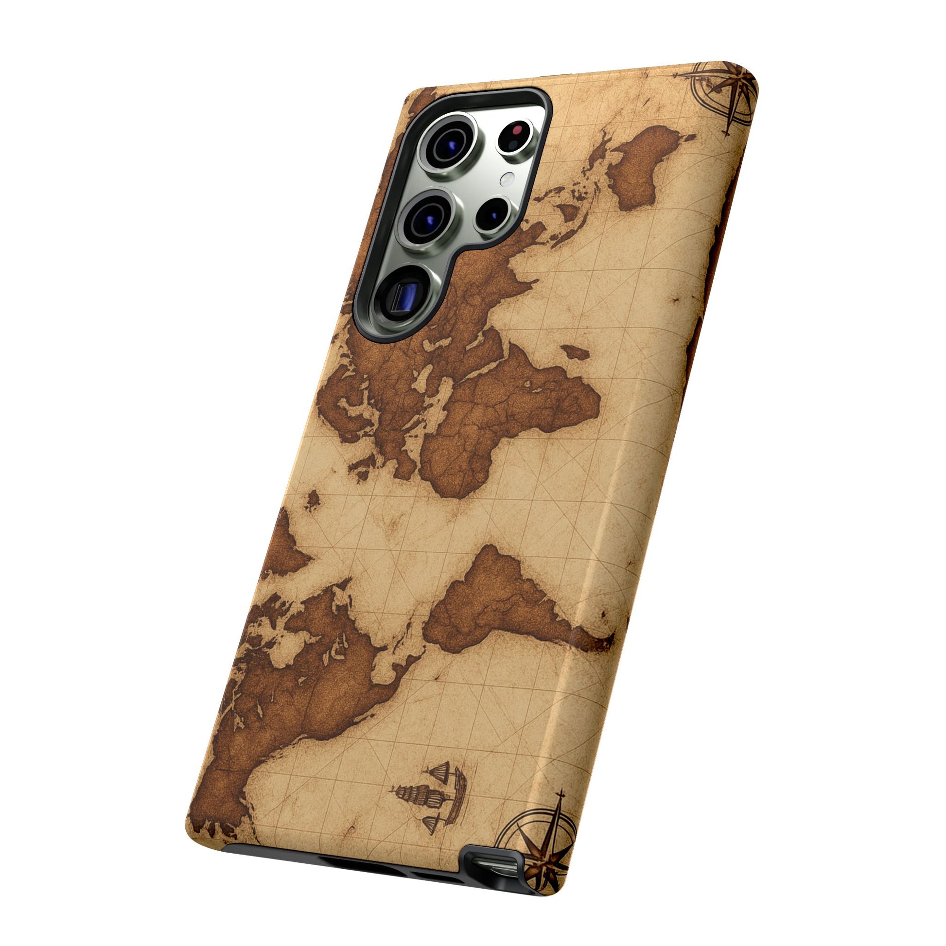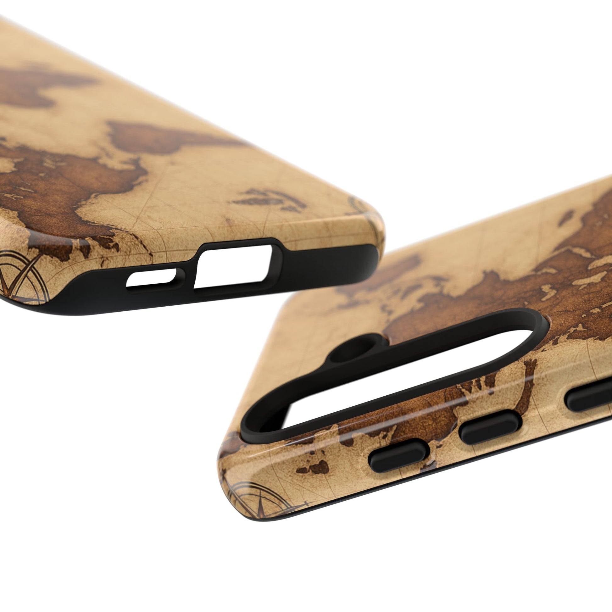 A phone case featuring a detailed world map design, perfect for travel enthusiasts and geography lovers. This durable and impact resistant case offers excellent protection against drops and tears, with a TPU silicone liner for shock absorption. Ideal for adults looking to protect their phones in style, this case is a great gift for birthdays, holidays, or as a treat for yourself.