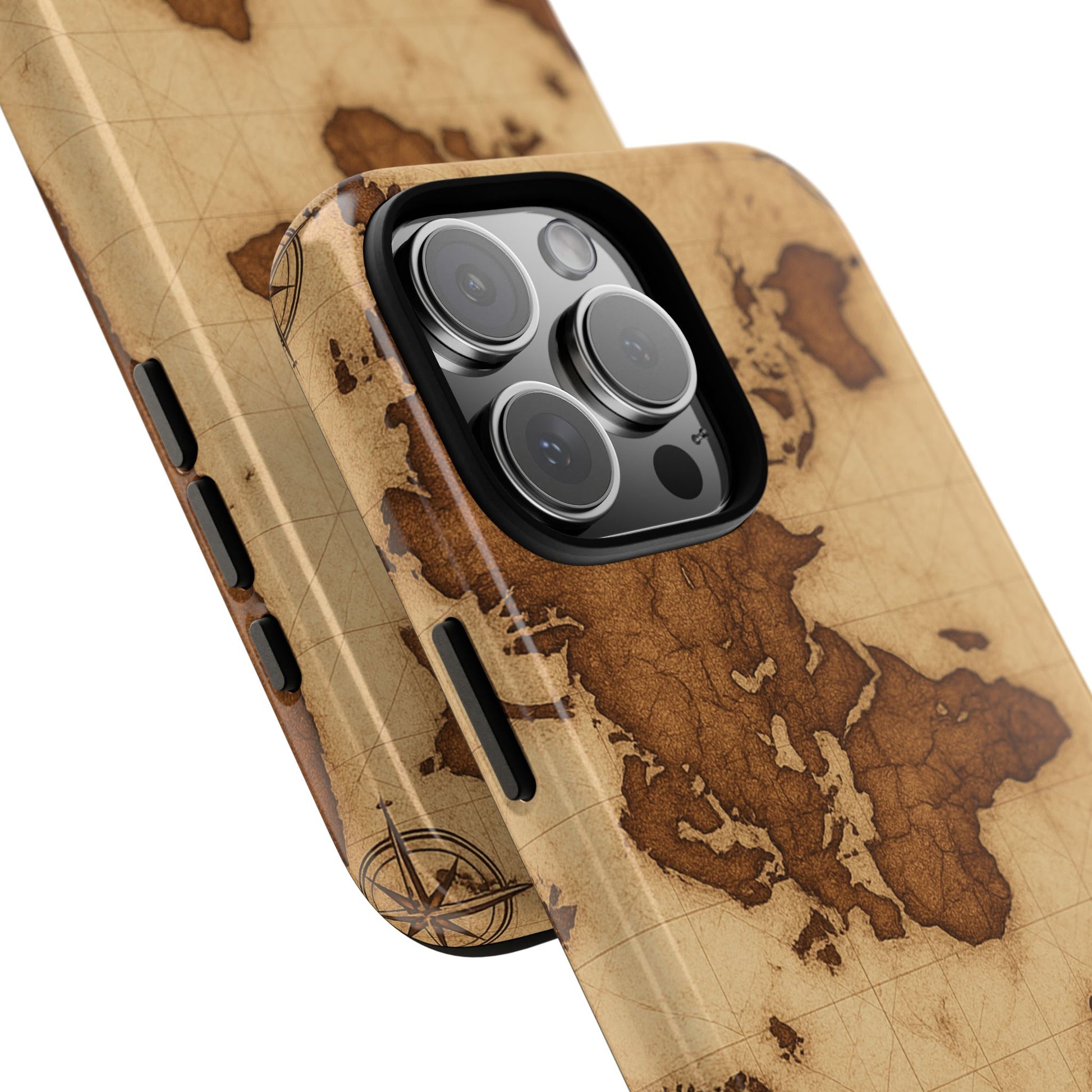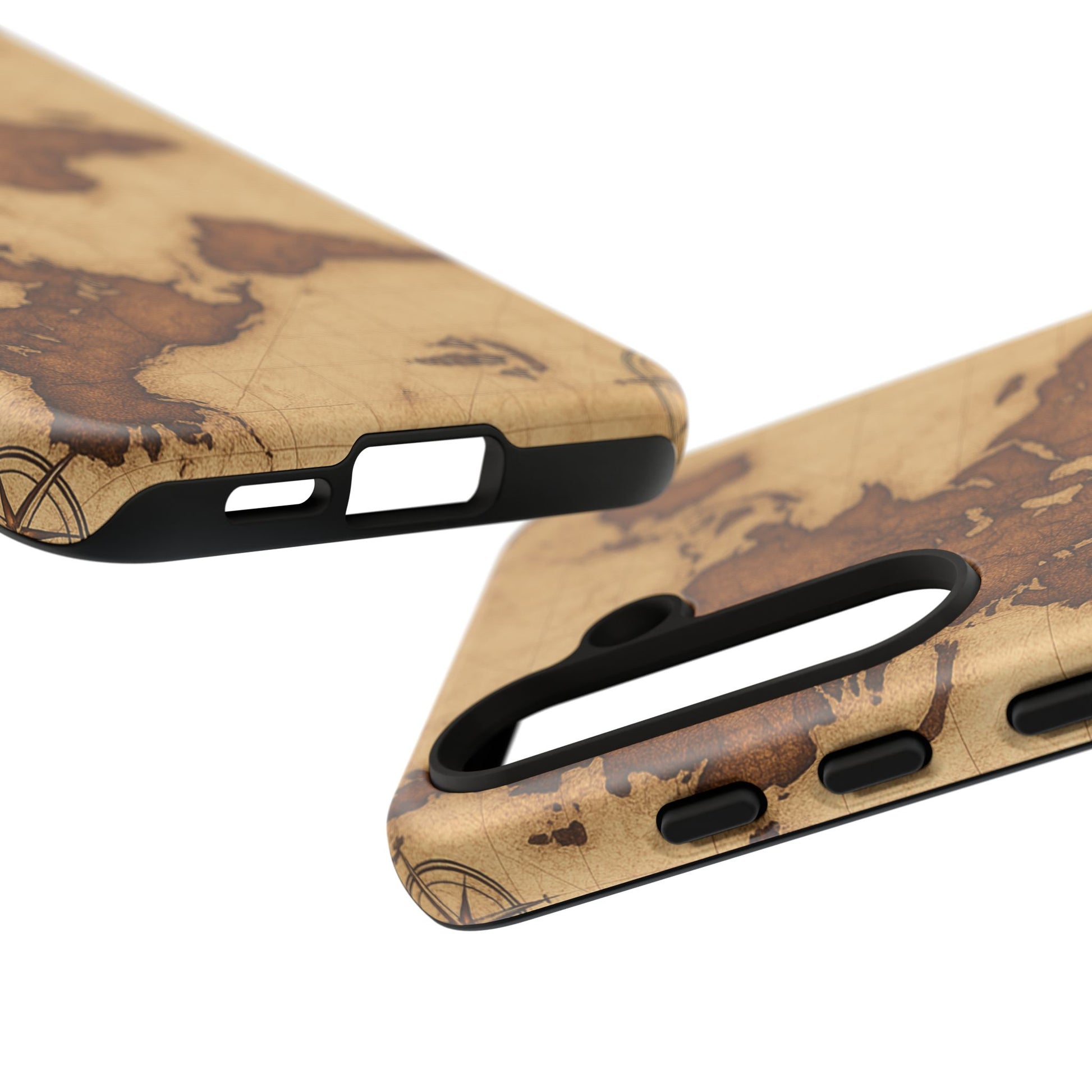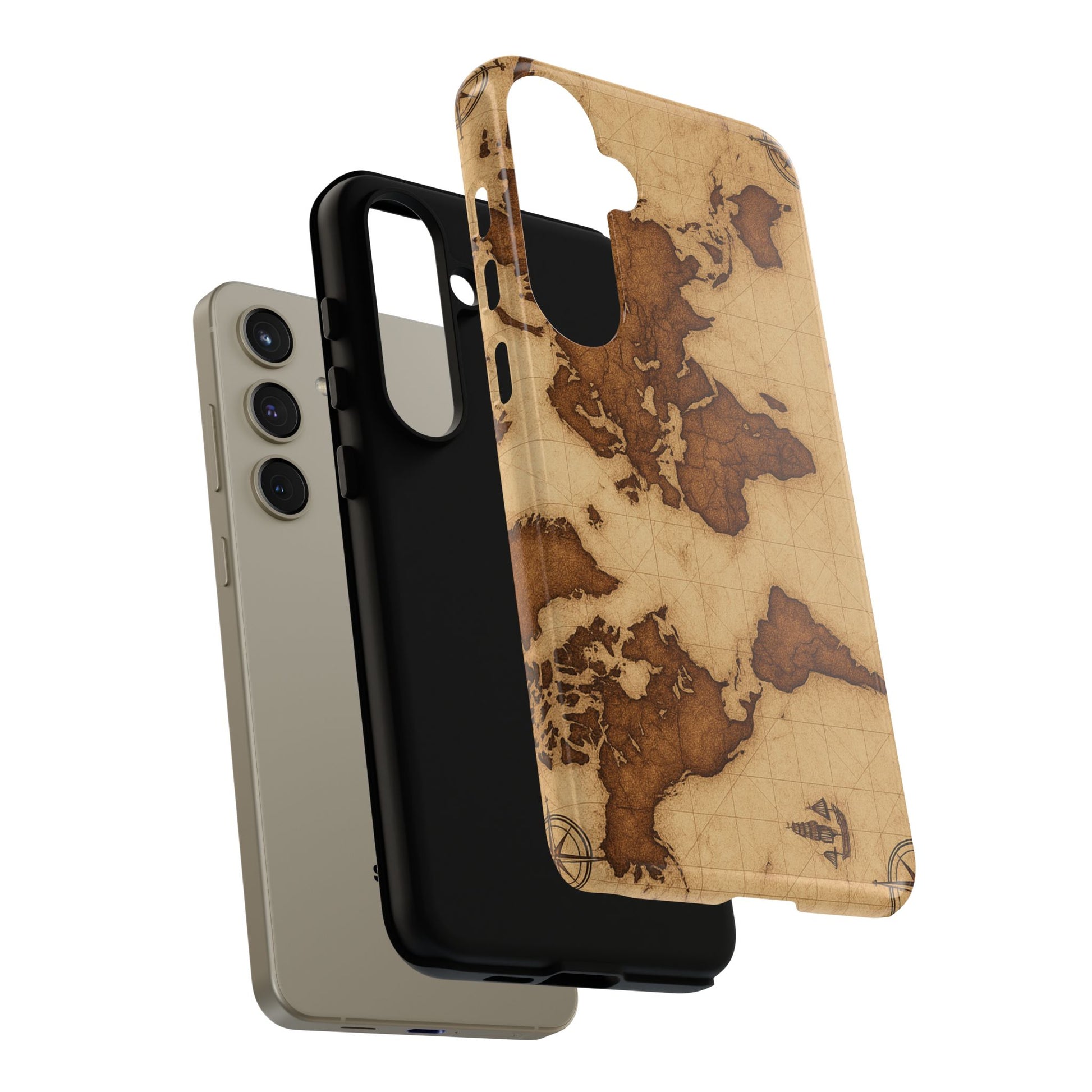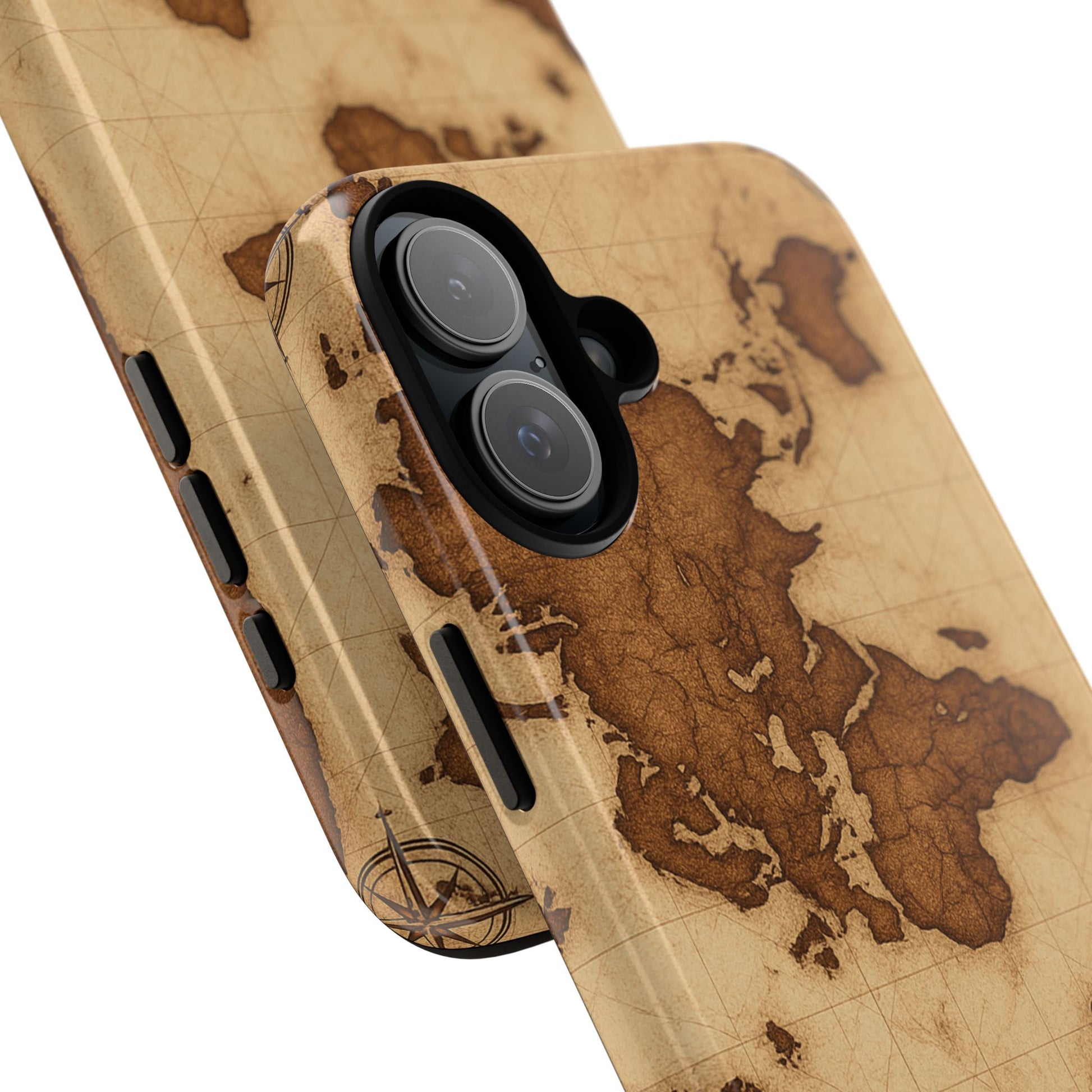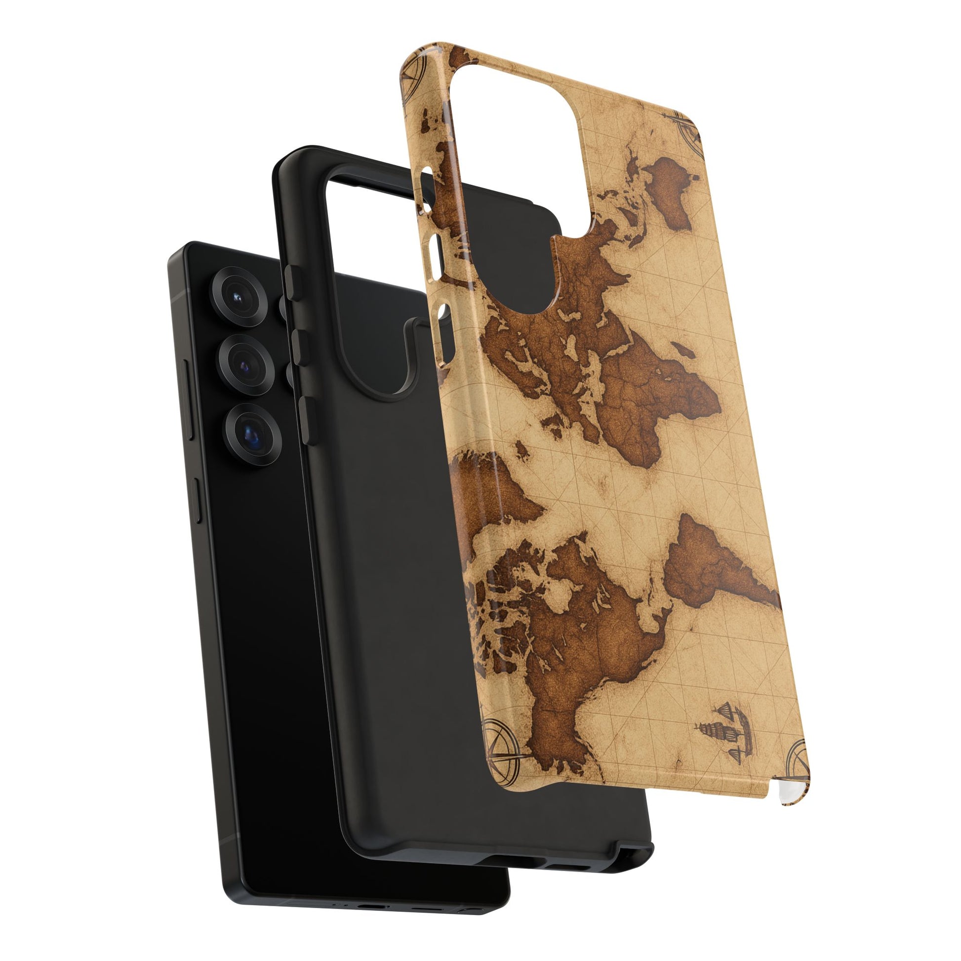 A phone case featuring a detailed world map design, perfect for travel enthusiasts and geography lovers. This durable and impact resistant case offers excellent protection against drops and tears, with a TPU silicone liner for shock absorption. Ideal for adults looking to protect their phones in style, this case is a great gift for birthdays, holidays, or as a treat for yourself.