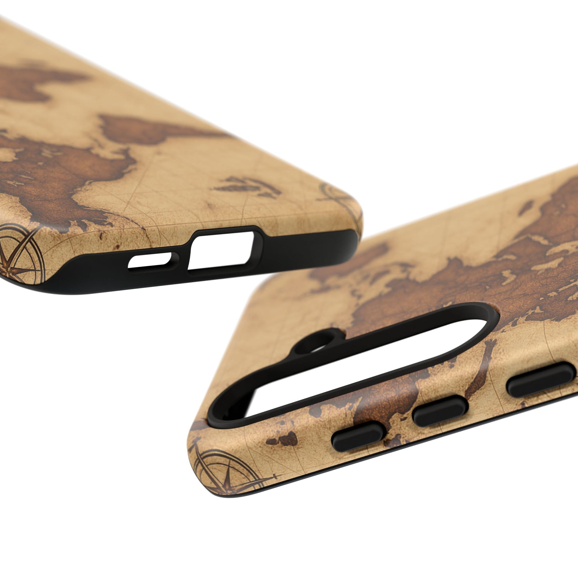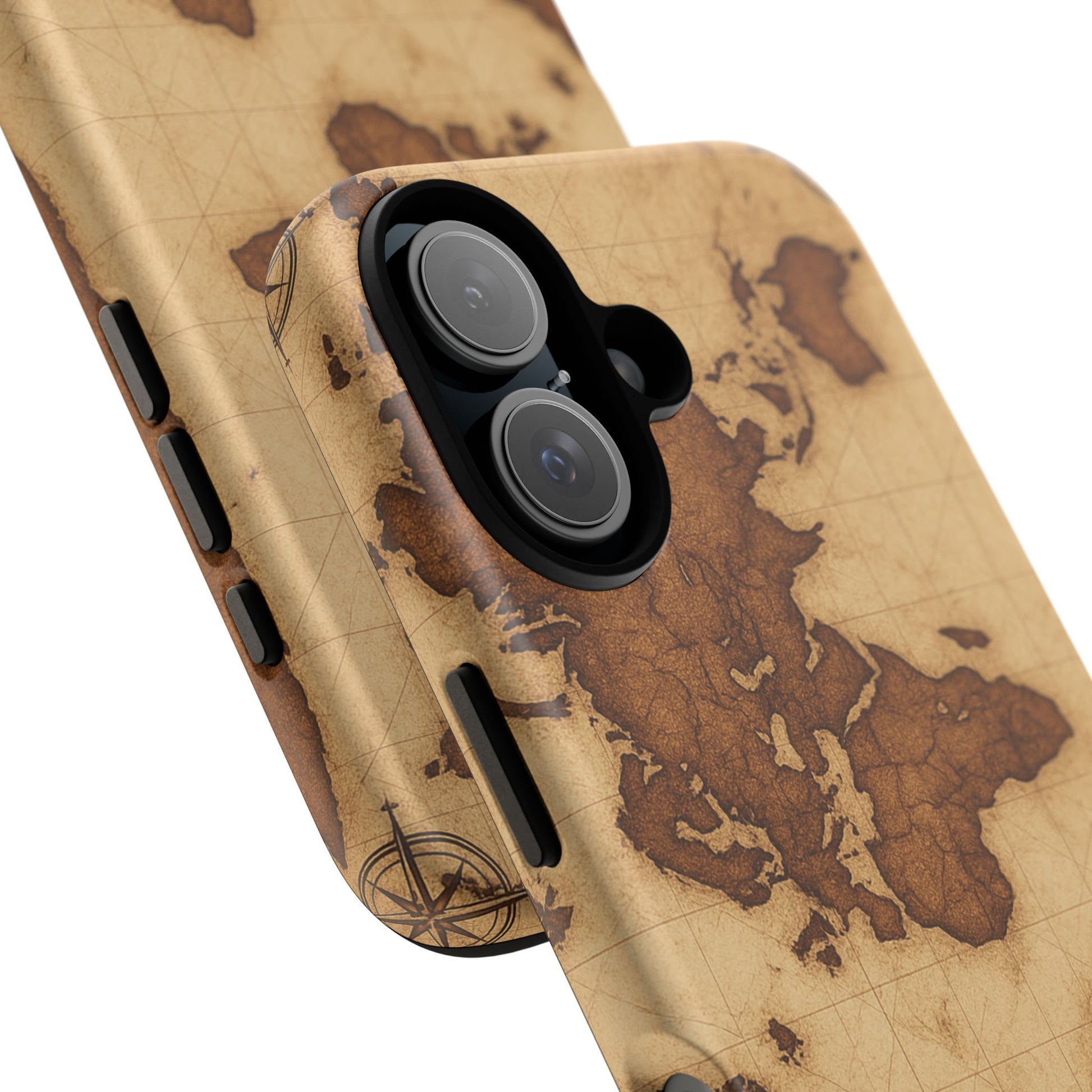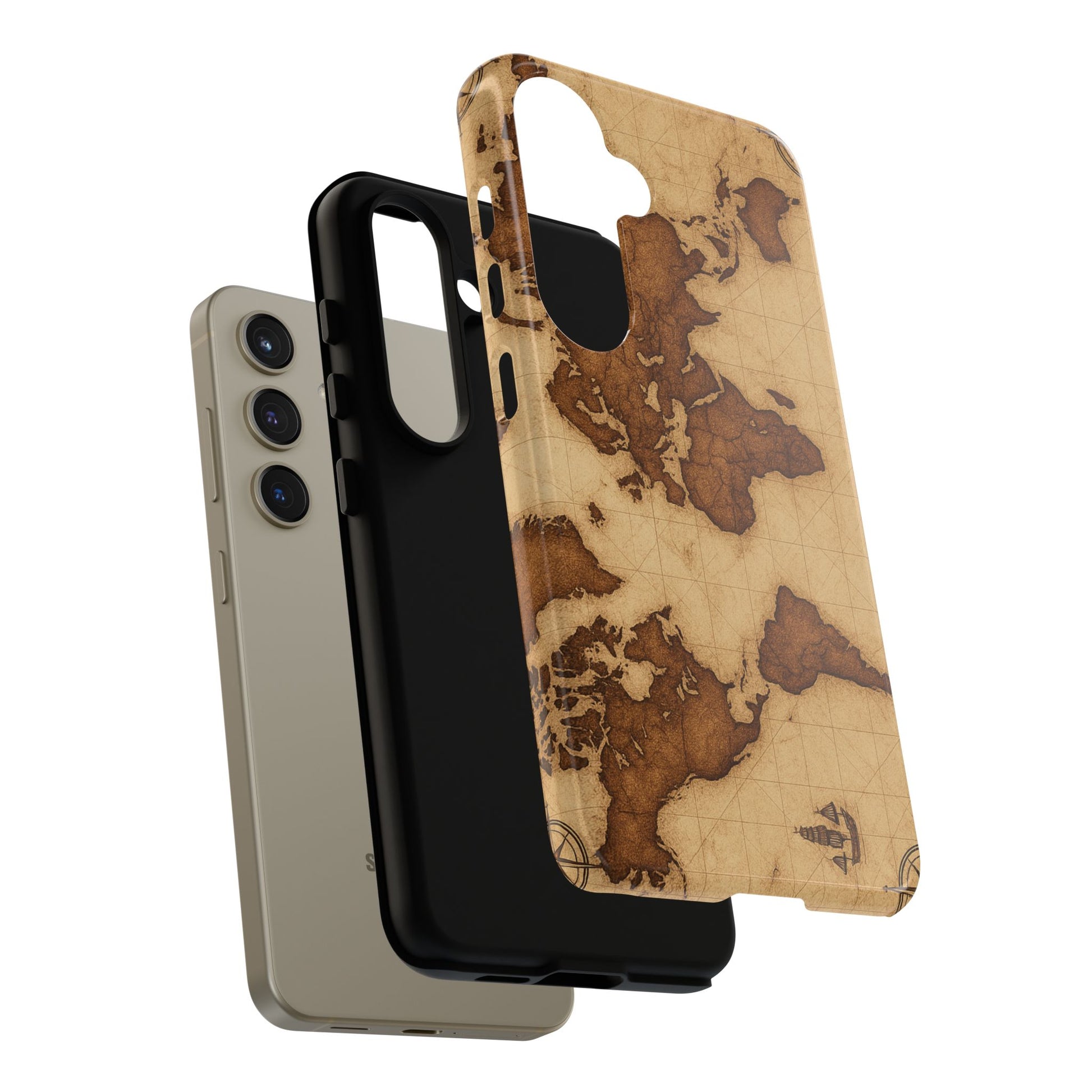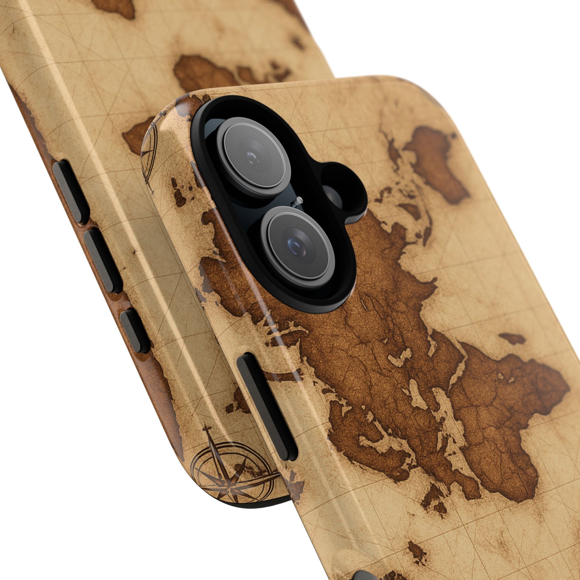 A phone case featuring a detailed world map design, perfect for travel enthusiasts and geography lovers. This durable and impact resistant case offers excellent protection against drops and tears, with a TPU silicone liner for shock absorption. Ideal for adults looking to protect their phones in style, this case is a great gift for birthdays, holidays, or as a treat for yourself.