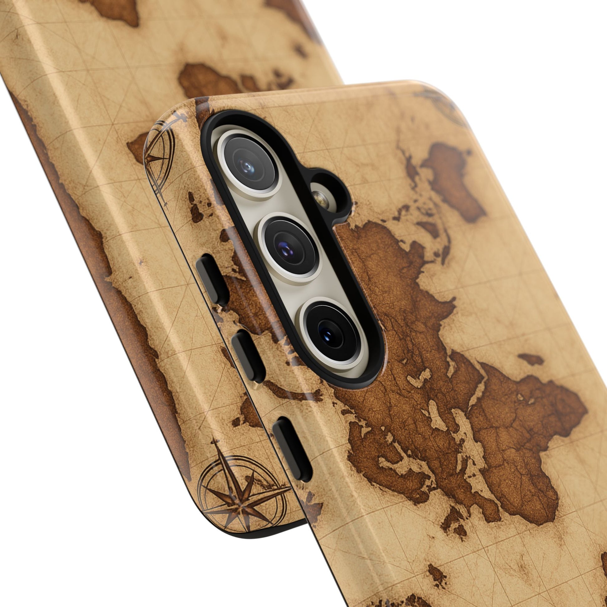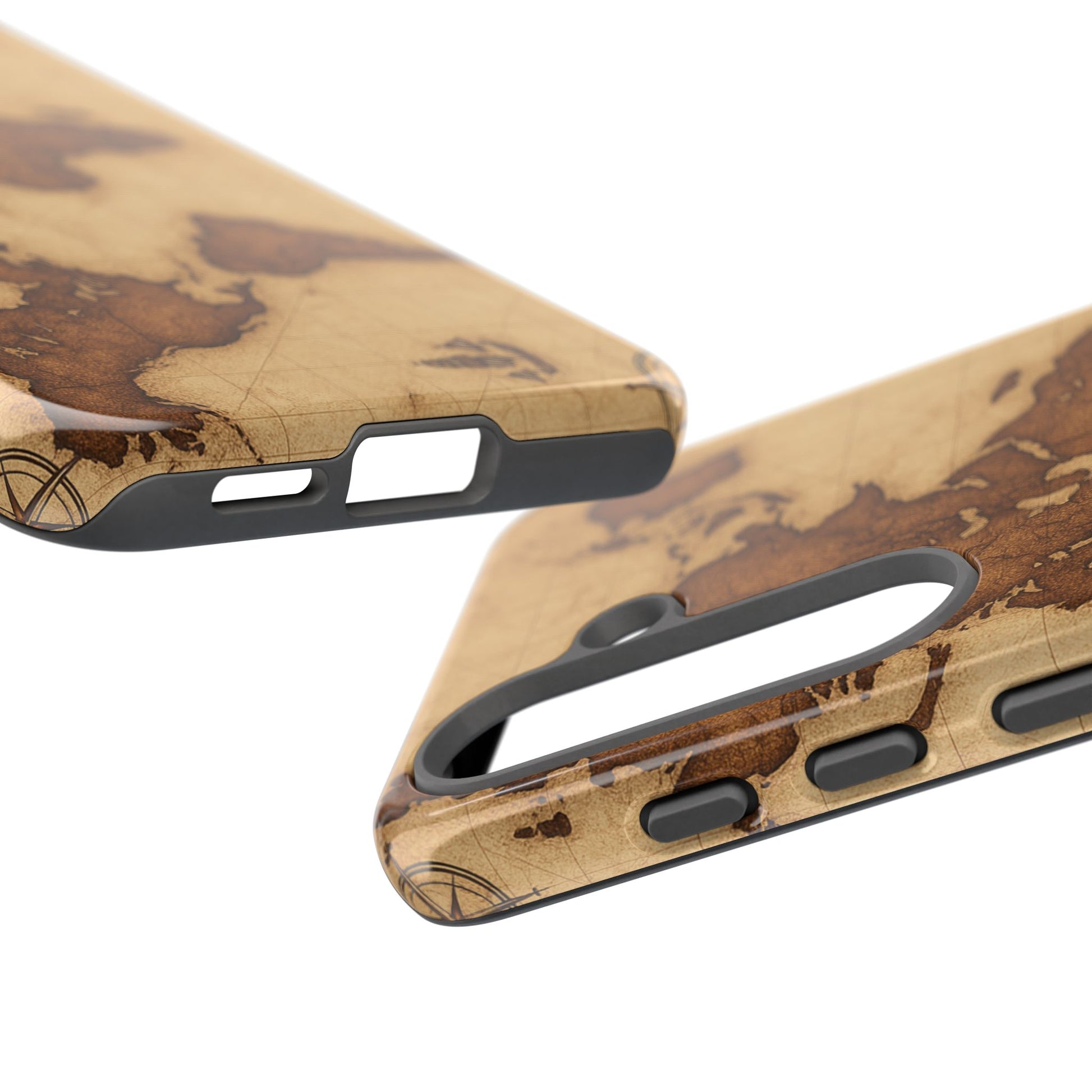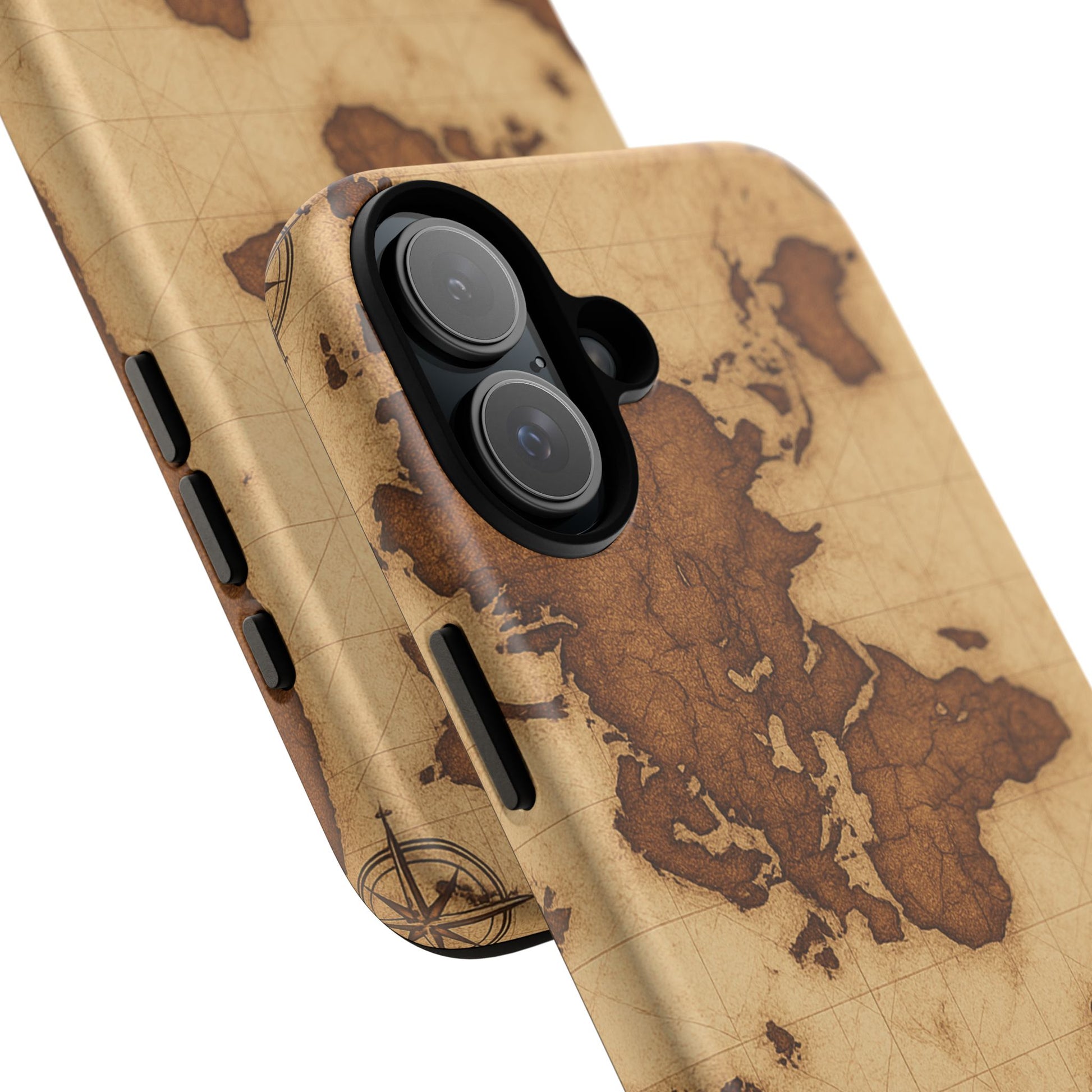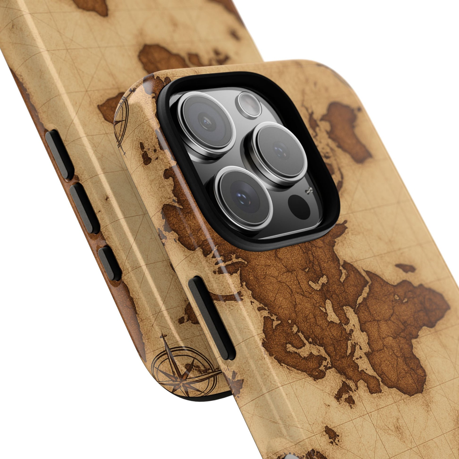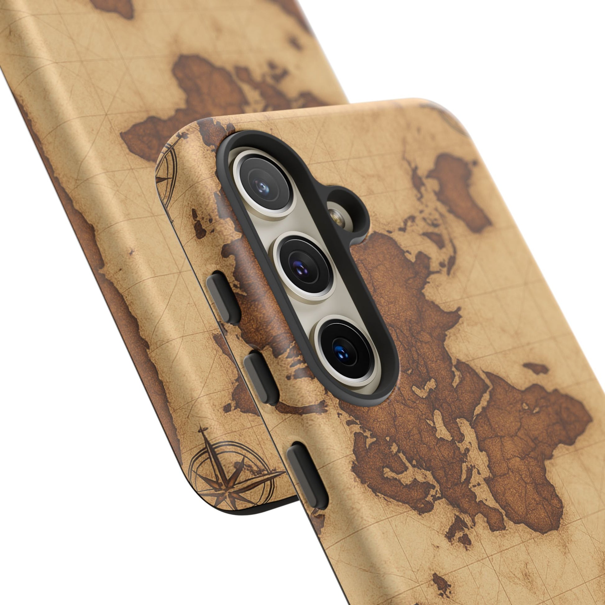 A phone case featuring a detailed world map design, perfect for travel enthusiasts and geography lovers. This durable and impact resistant case offers excellent protection against drops and tears, with a TPU silicone liner for shock absorption. Ideal for adults looking to protect their phones in style, this case is a great gift for birthdays, holidays, or as a treat for yourself.