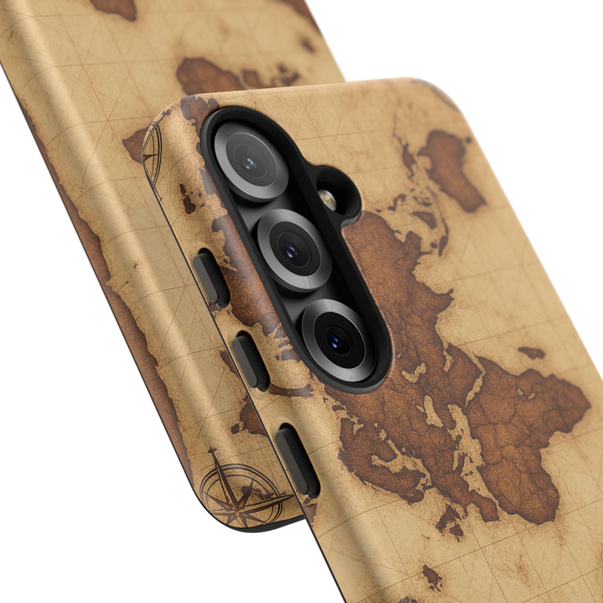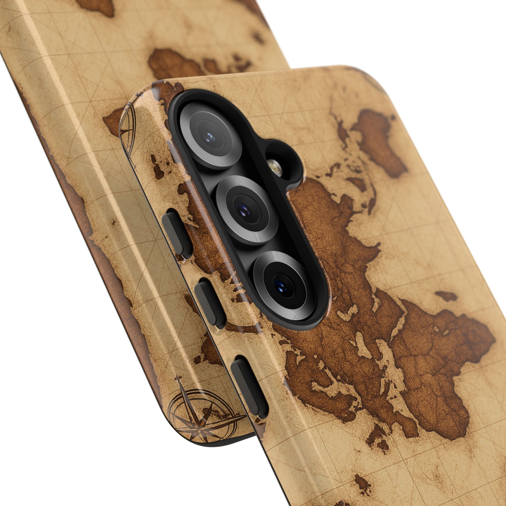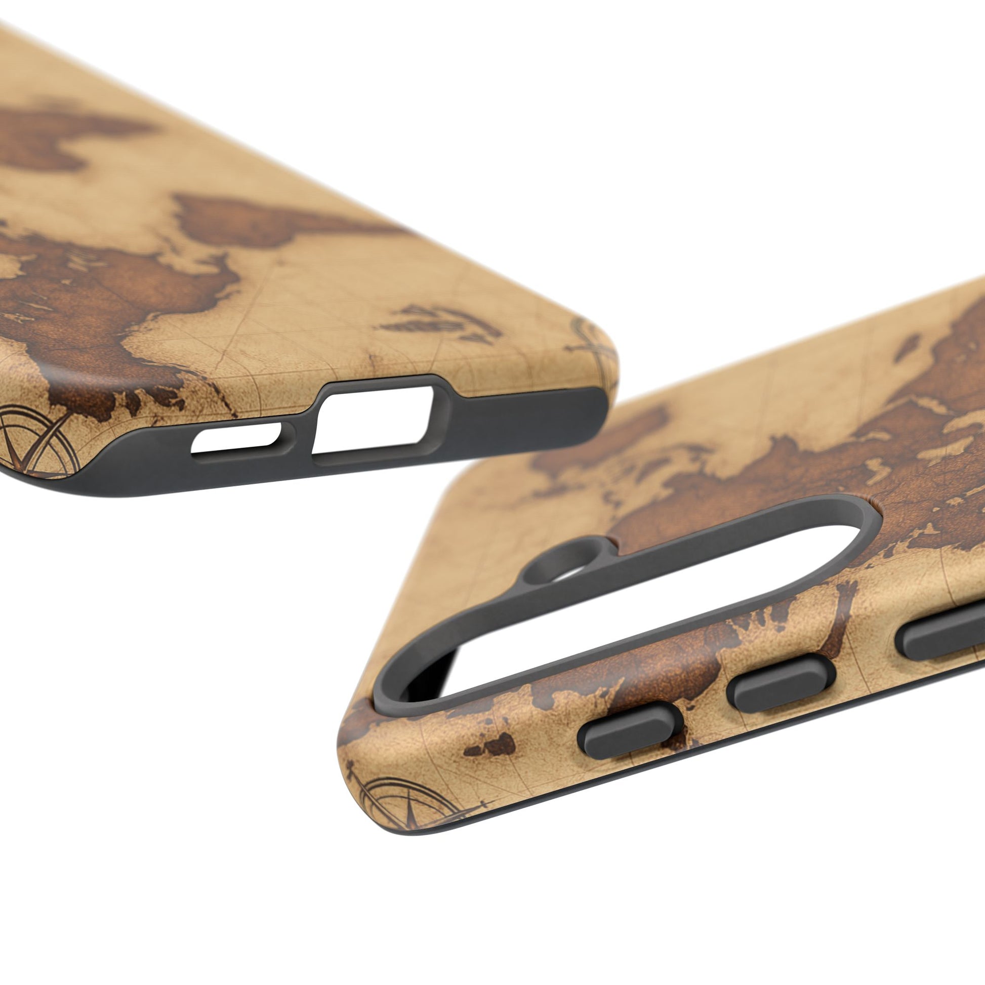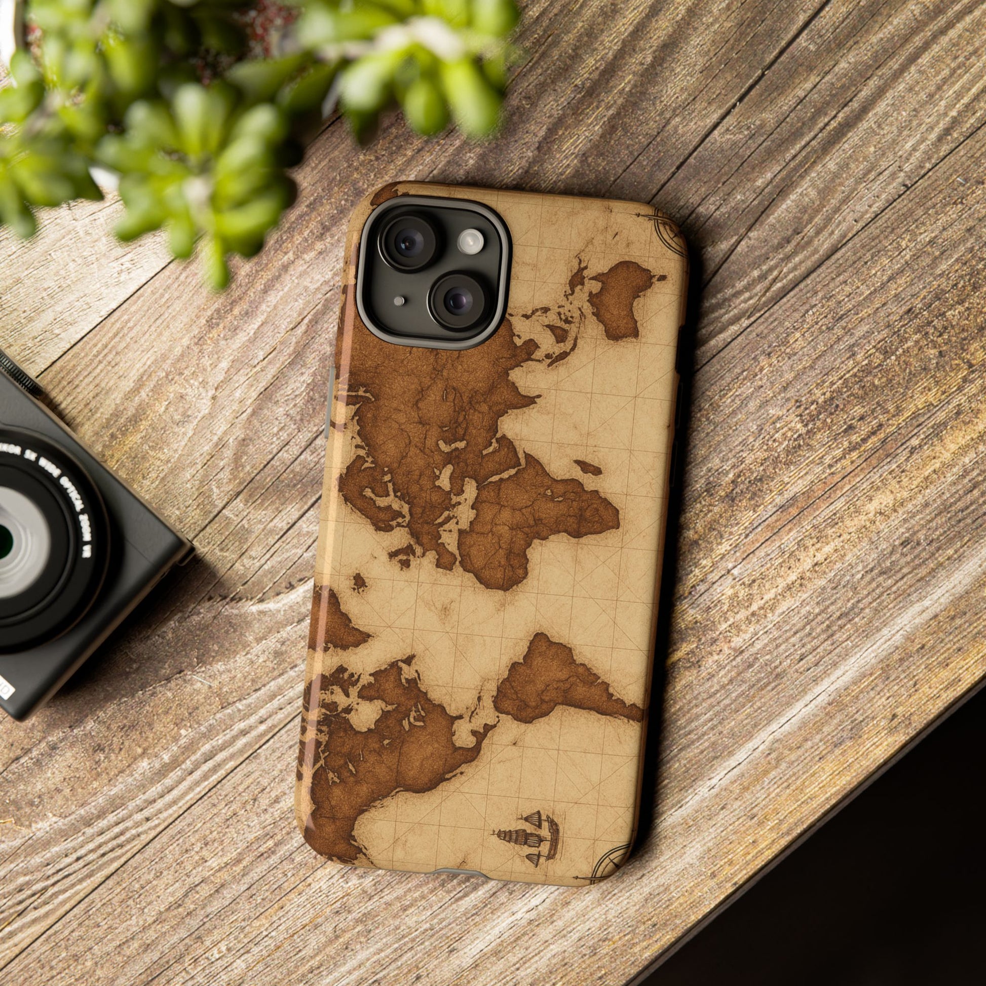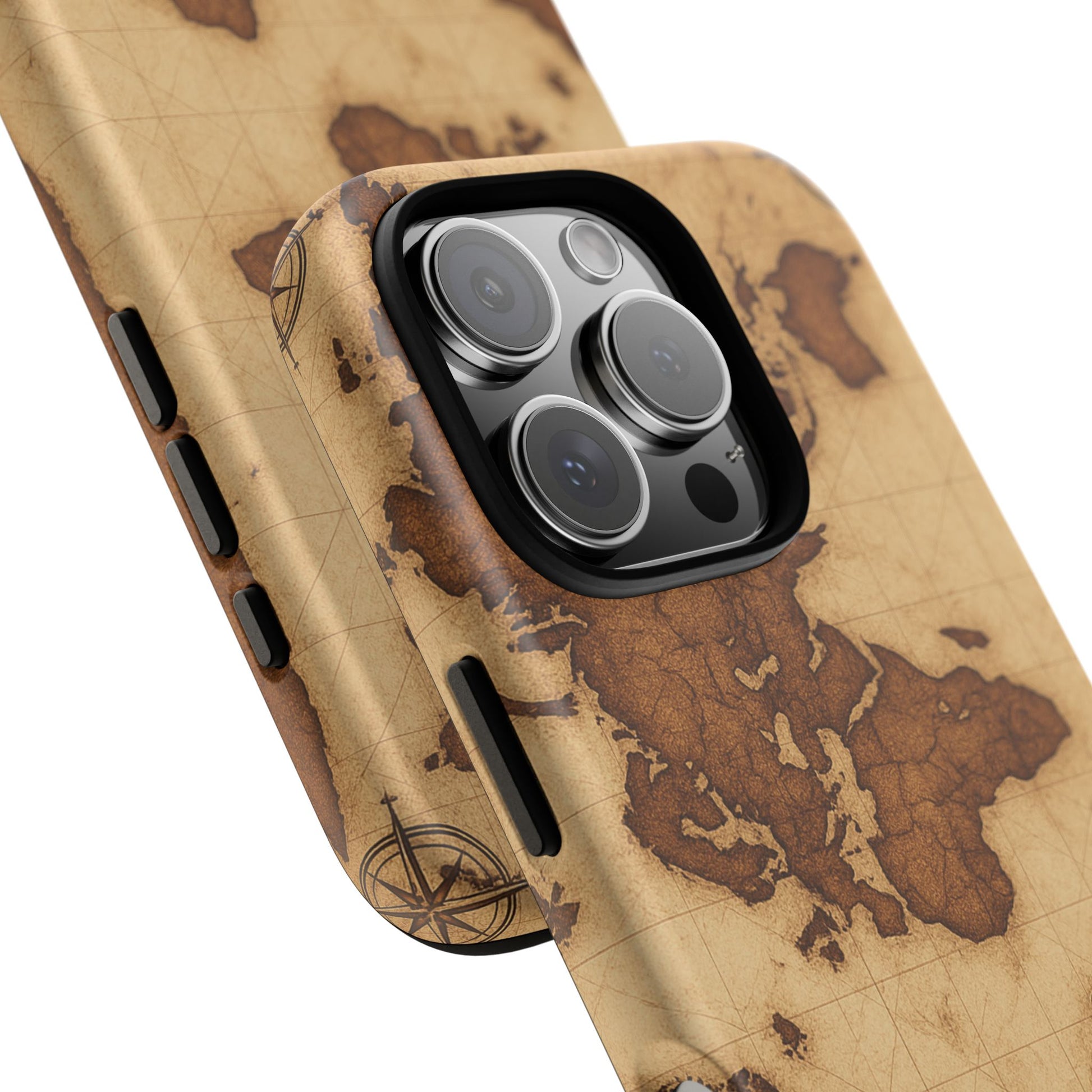 A phone case featuring a detailed world map design, perfect for travel enthusiasts and geography lovers. This durable and impact resistant case offers excellent protection against drops and tears, with a TPU silicone liner for shock absorption. Ideal for adults looking to protect their phones in style, this case is a great gift for birthdays, holidays, or as a treat for yourself.