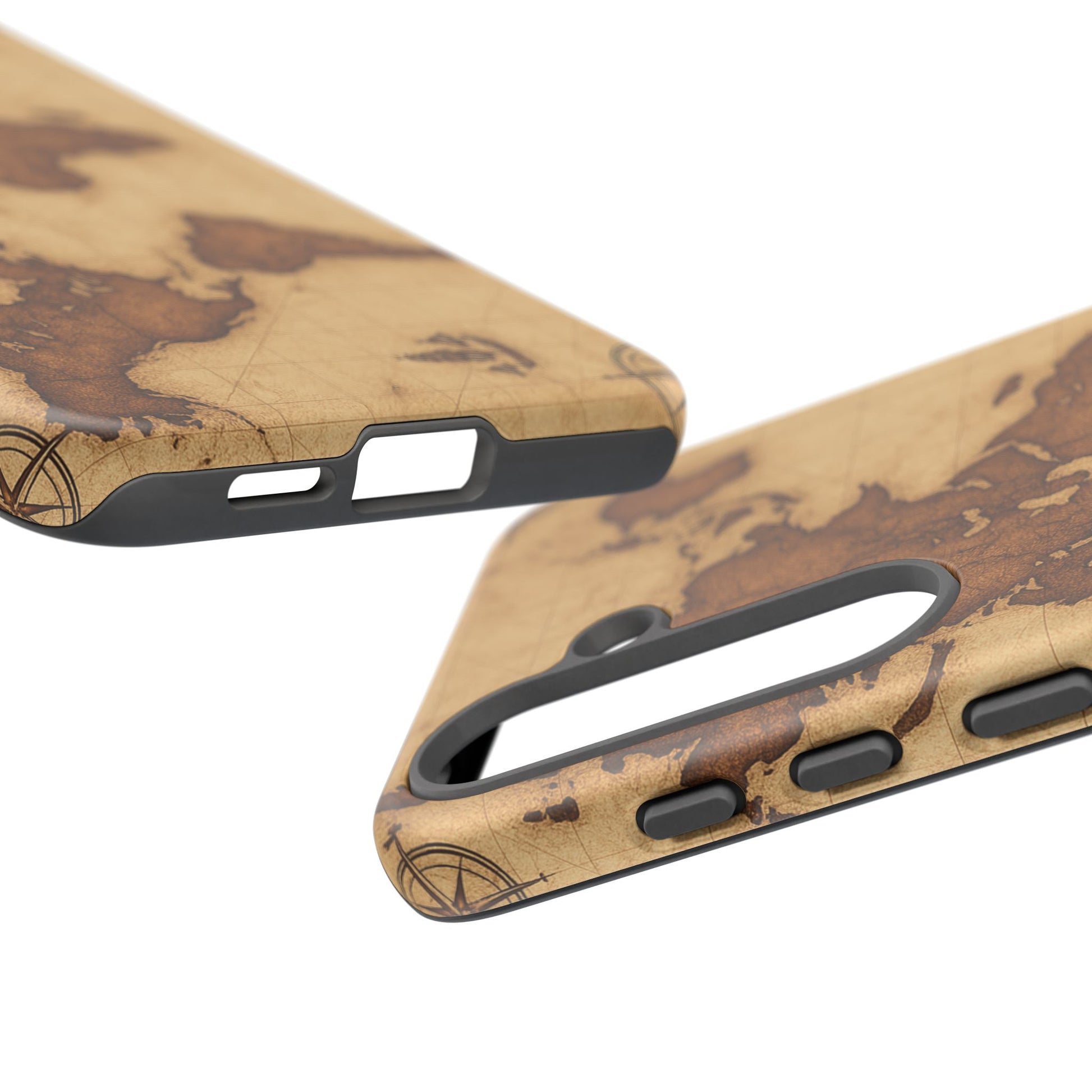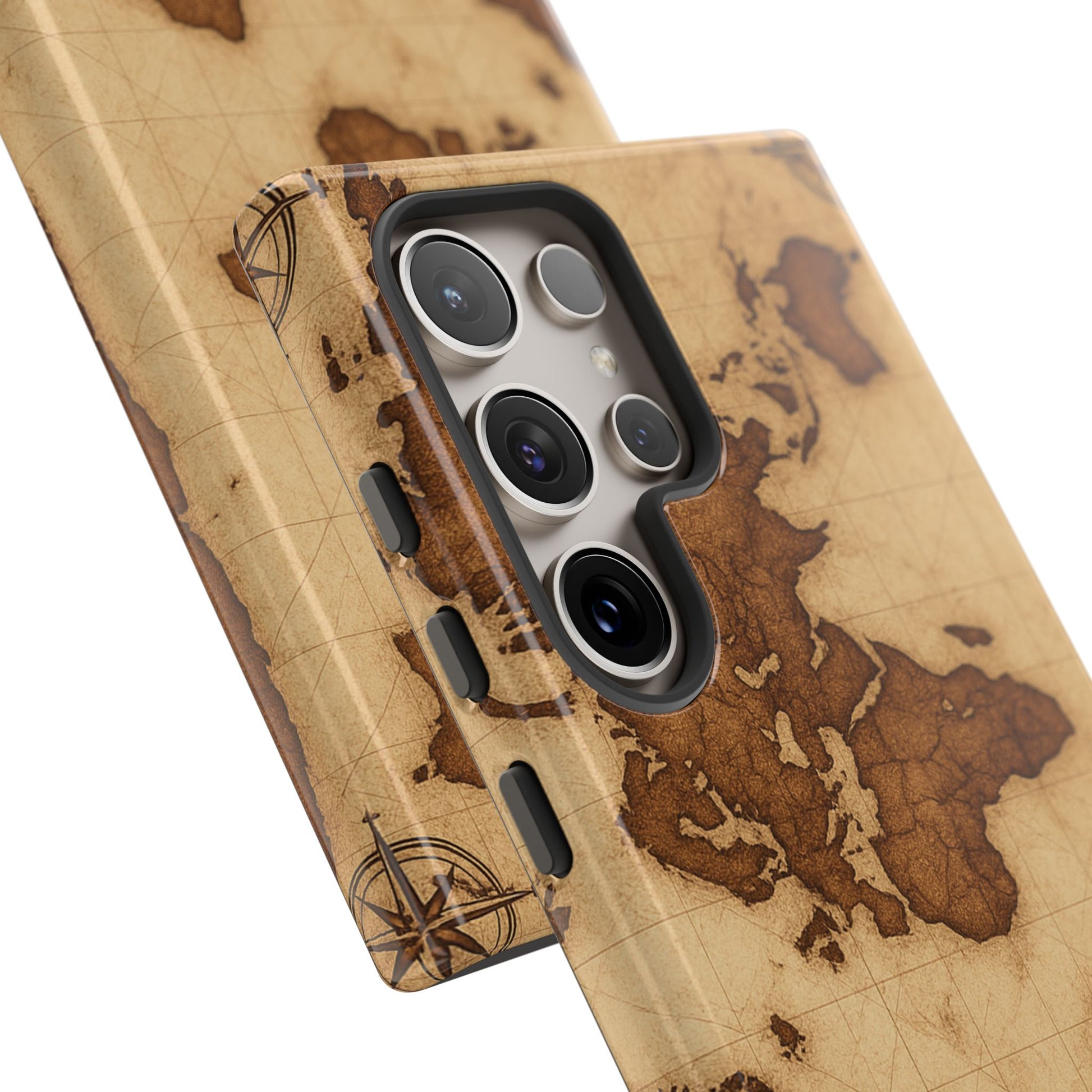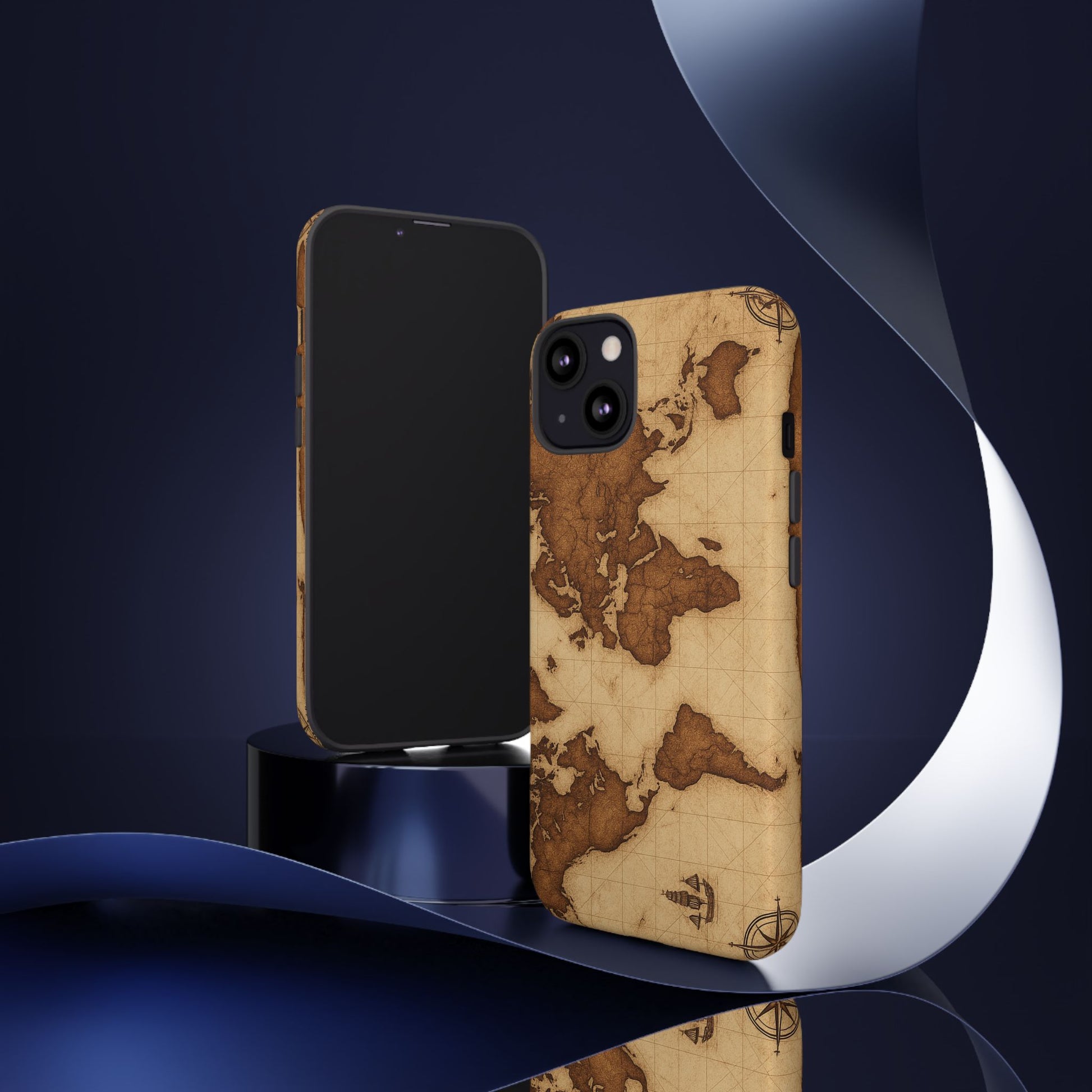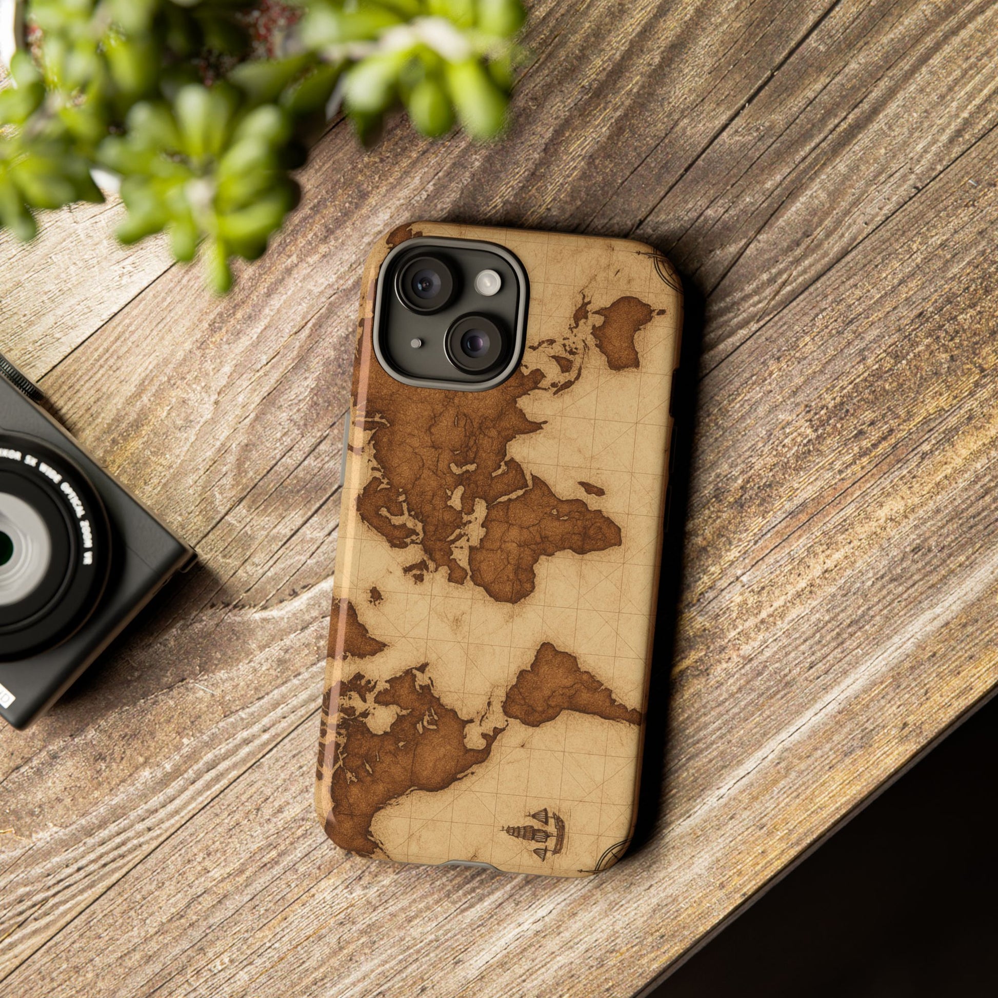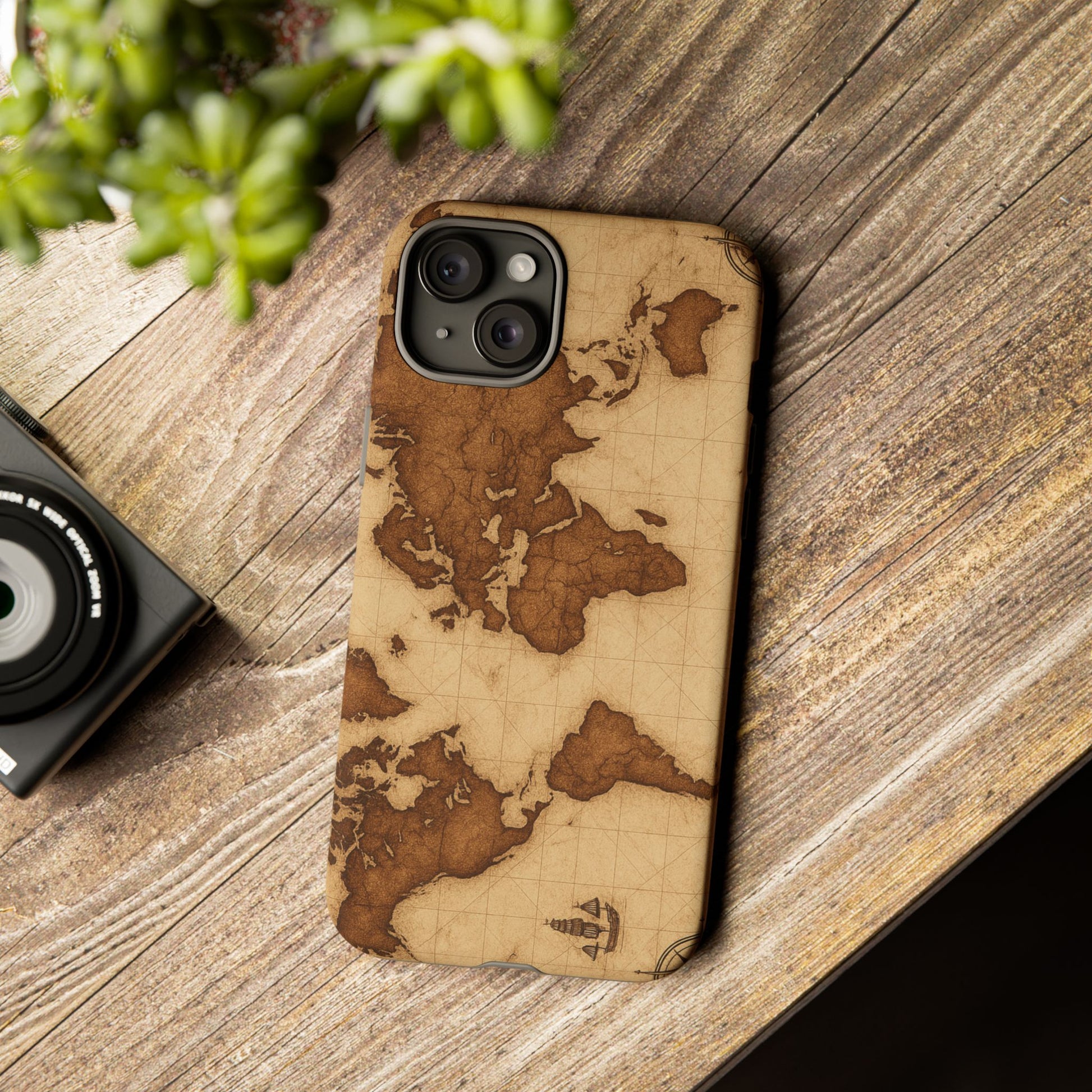 A phone case featuring a detailed world map design, perfect for travel enthusiasts and geography lovers. This durable and impact resistant case offers excellent protection against drops and tears, with a TPU silicone liner for shock absorption. Ideal for adults looking to protect their phones in style, this case is a great gift for birthdays, holidays, or as a treat for yourself.