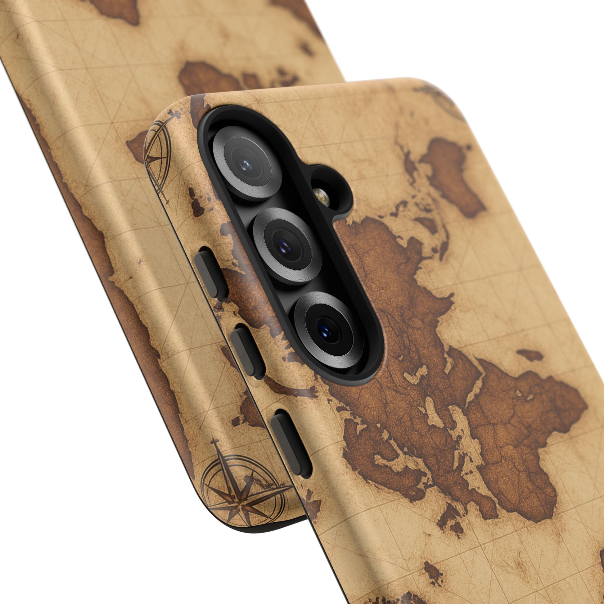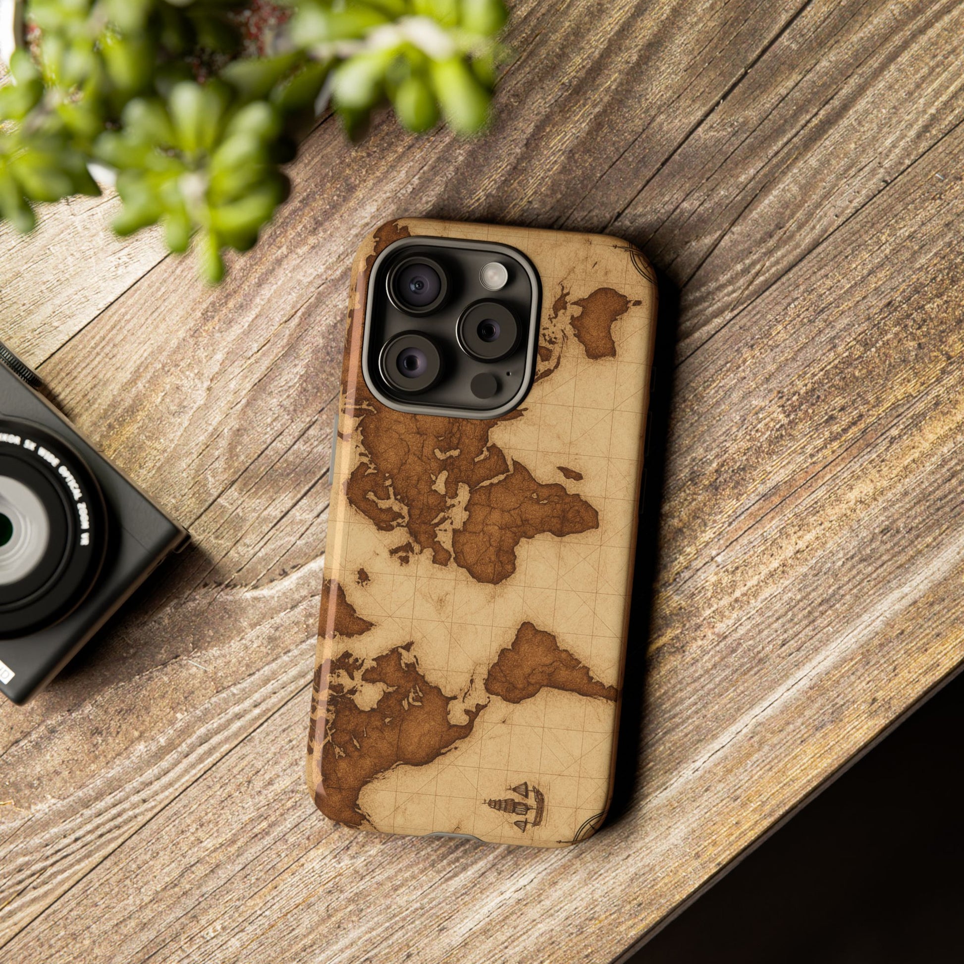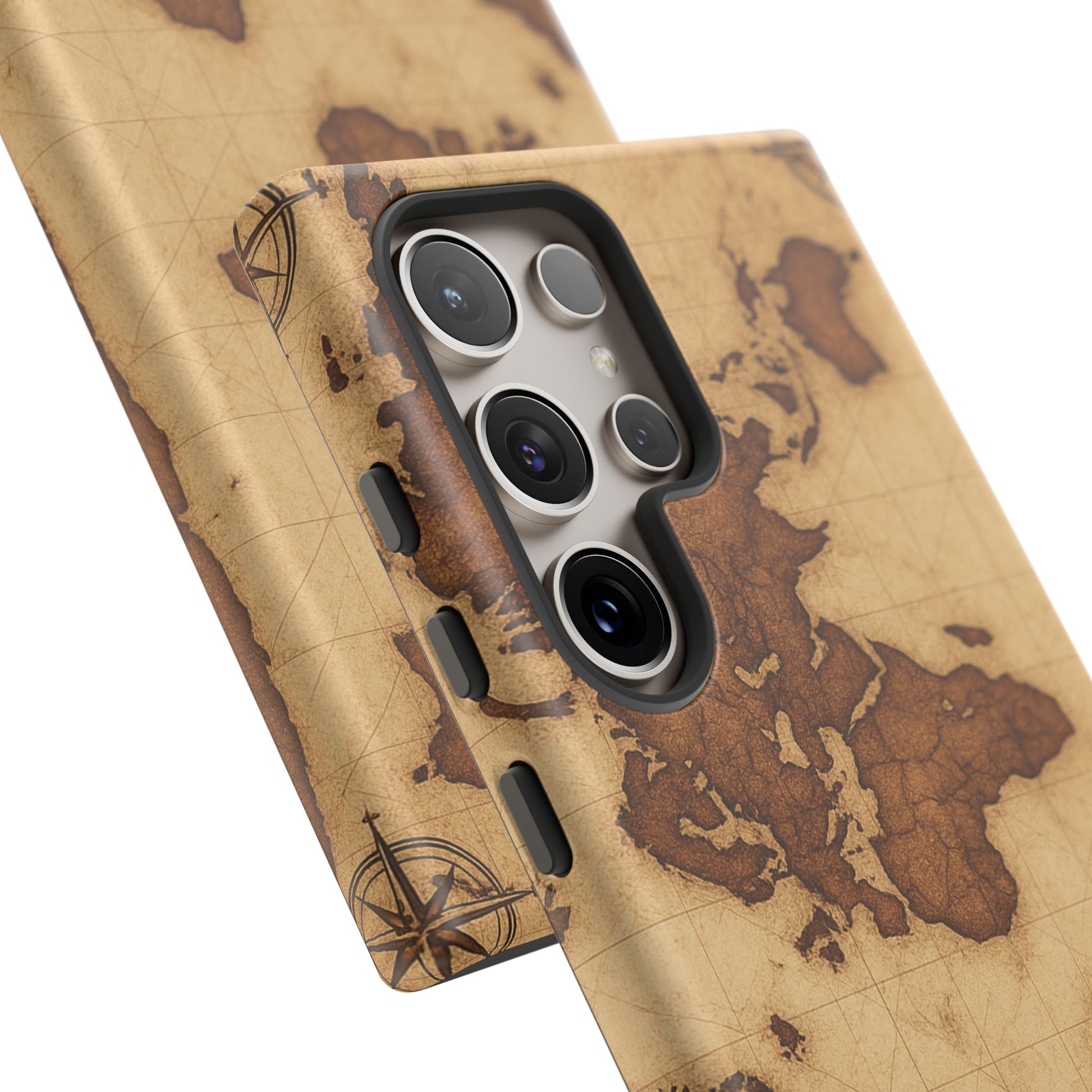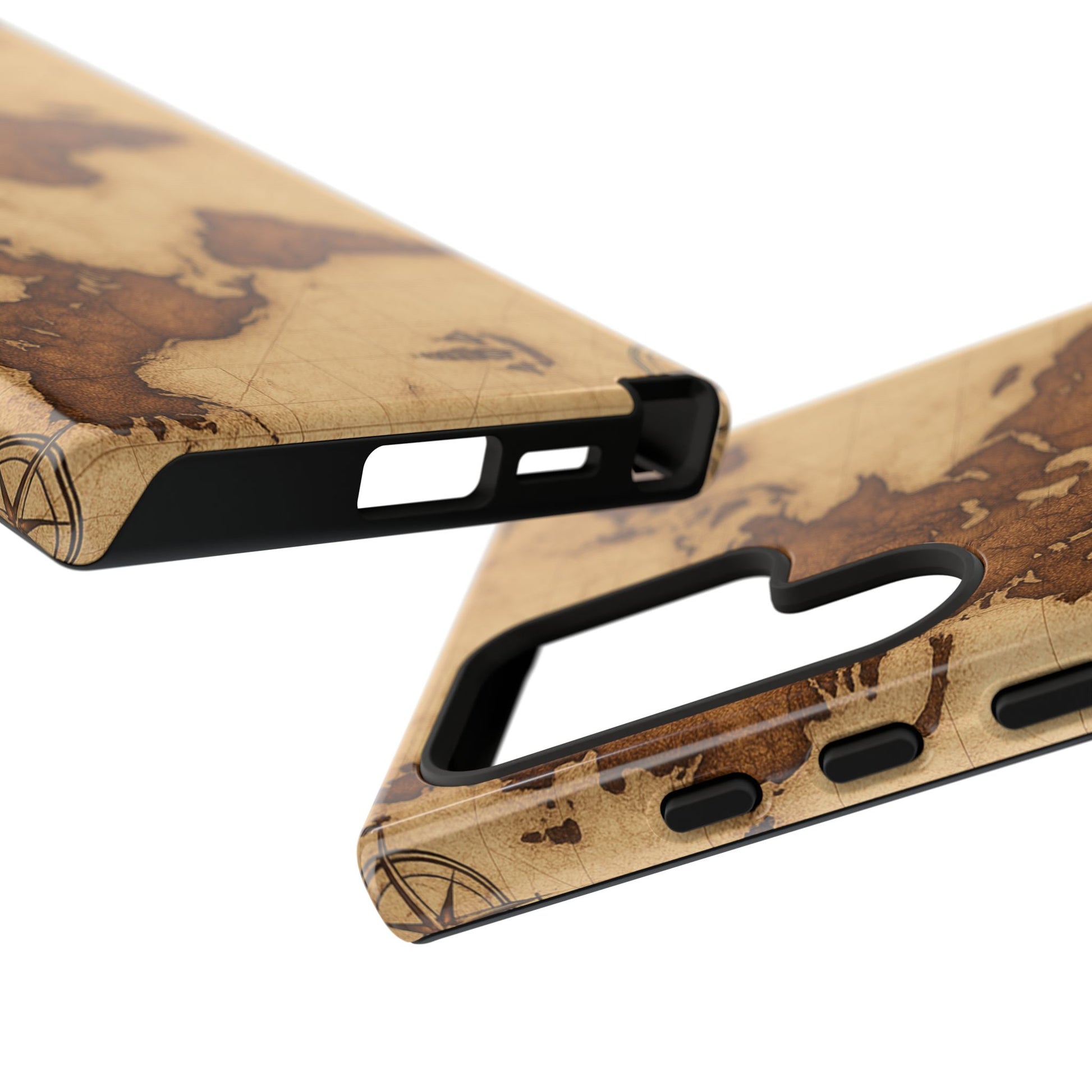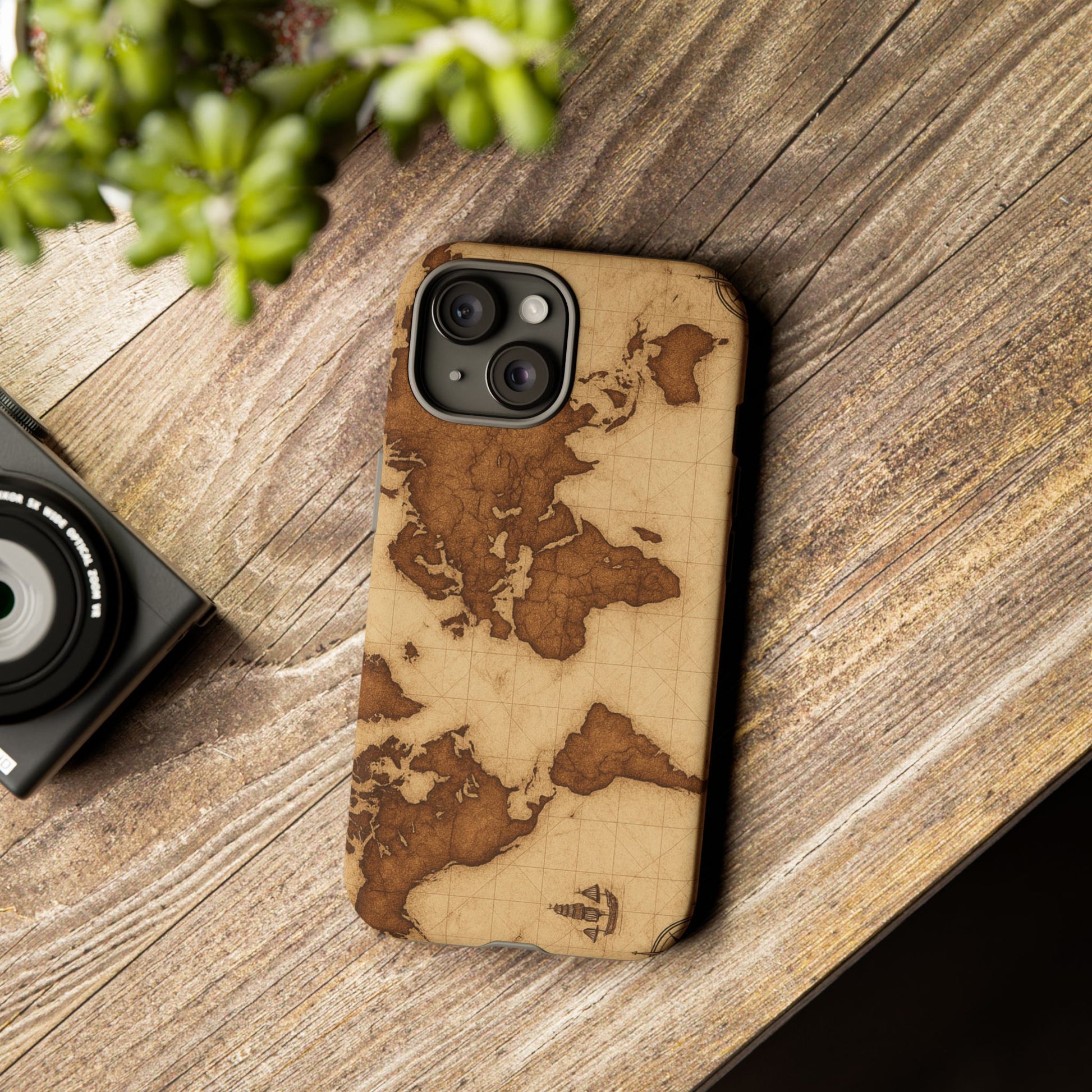 A phone case featuring a detailed world map design, perfect for travel enthusiasts and geography lovers. This durable and impact resistant case offers excellent protection against drops and tears, with a TPU silicone liner for shock absorption. Ideal for adults looking to protect their phones in style, this case is a great gift for birthdays, holidays, or as a treat for yourself.