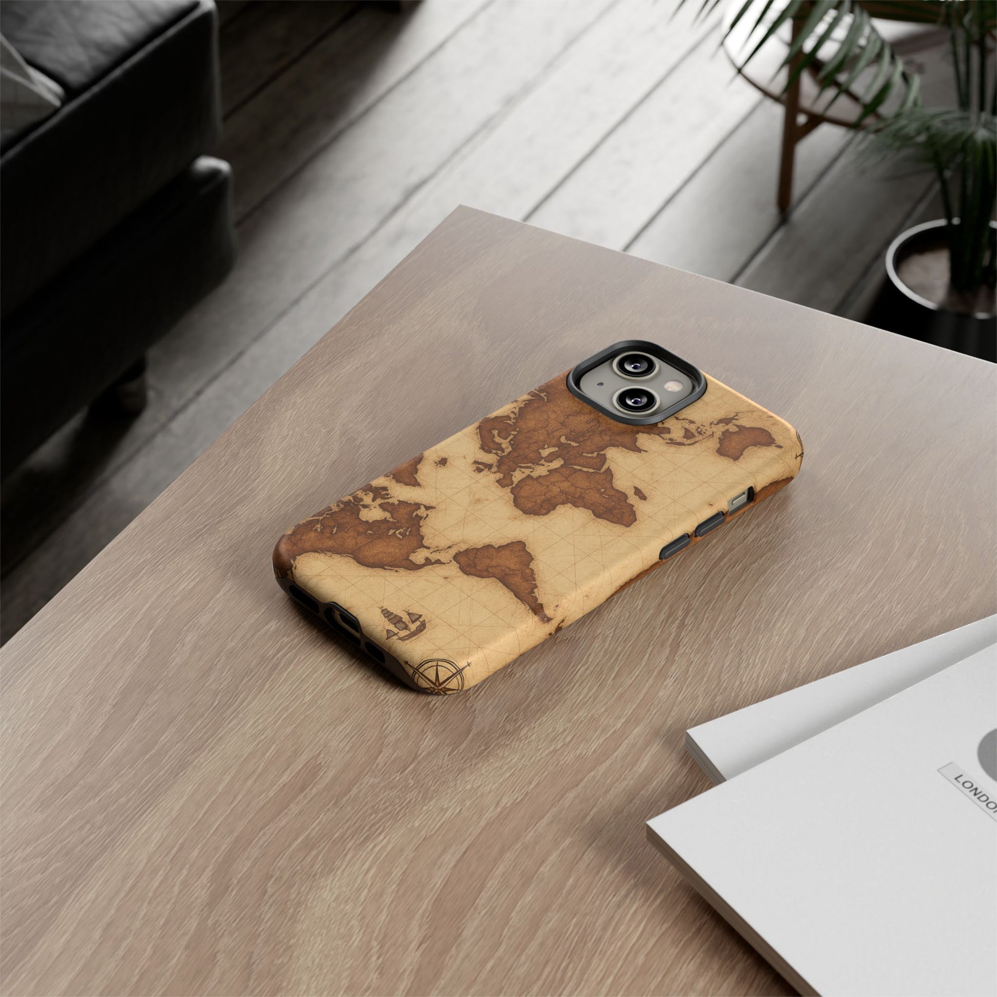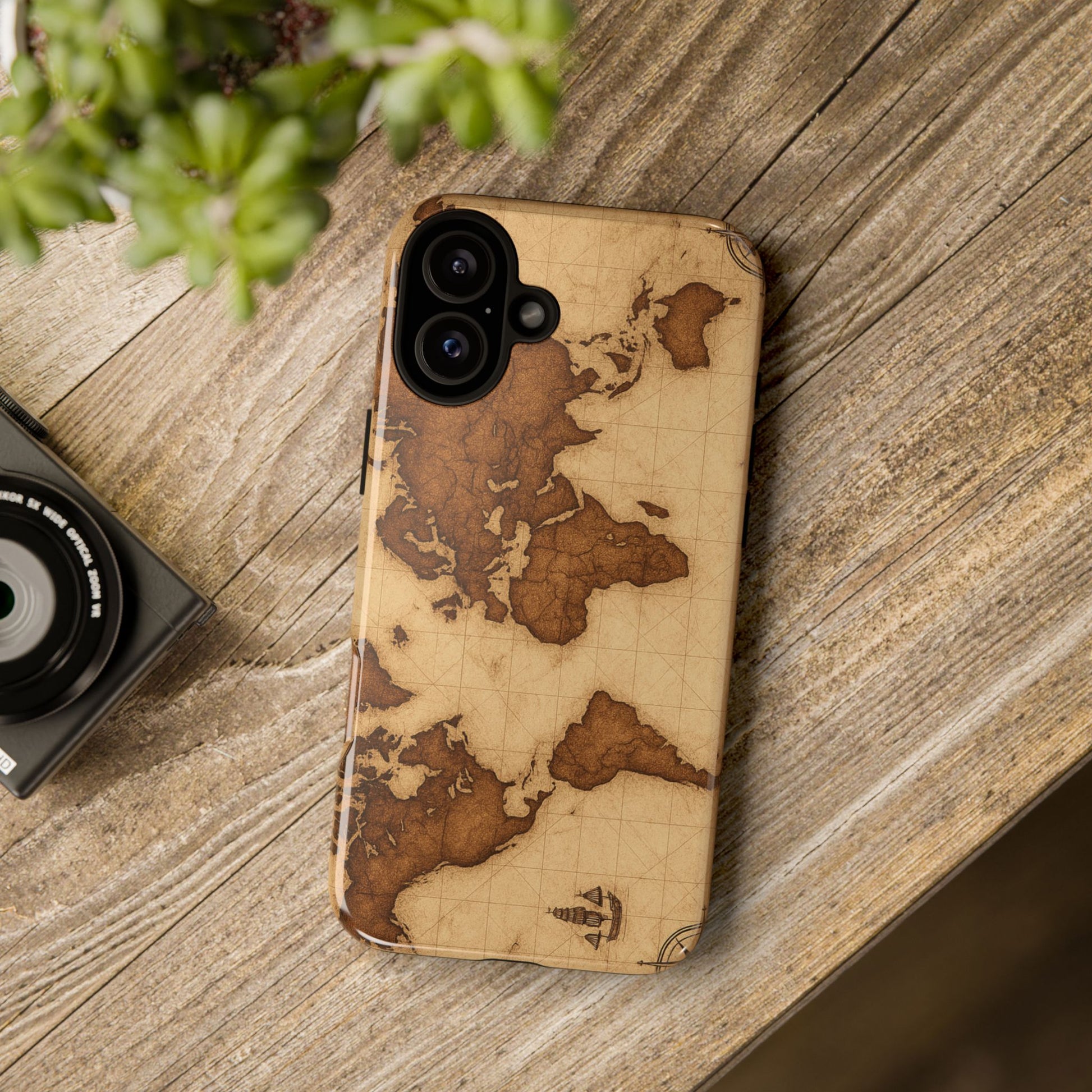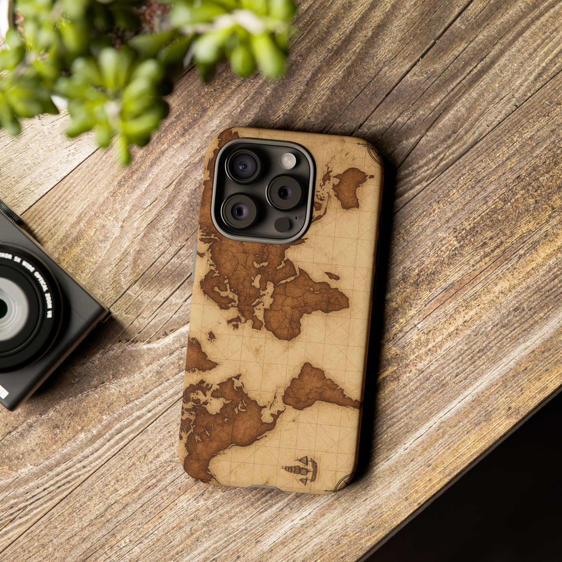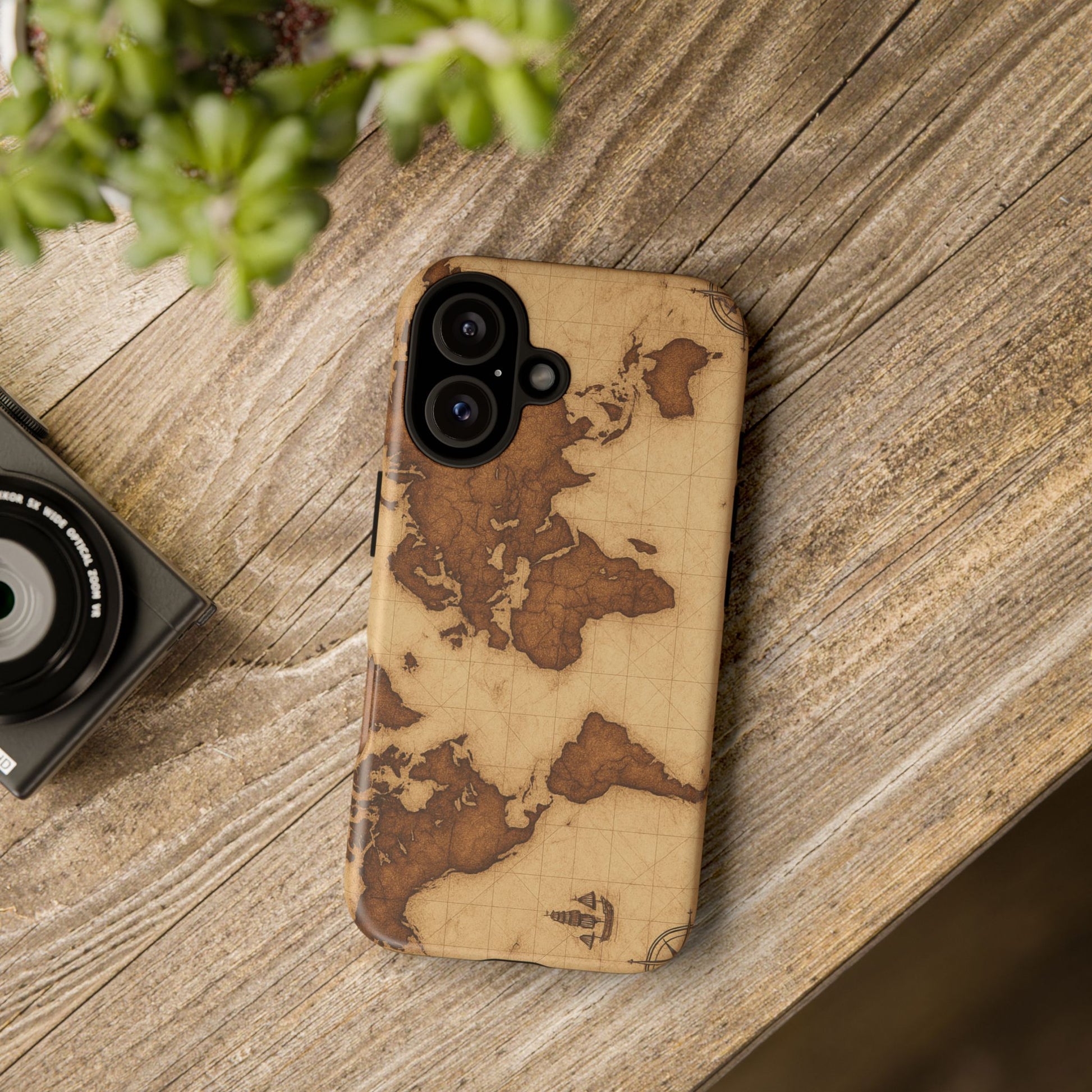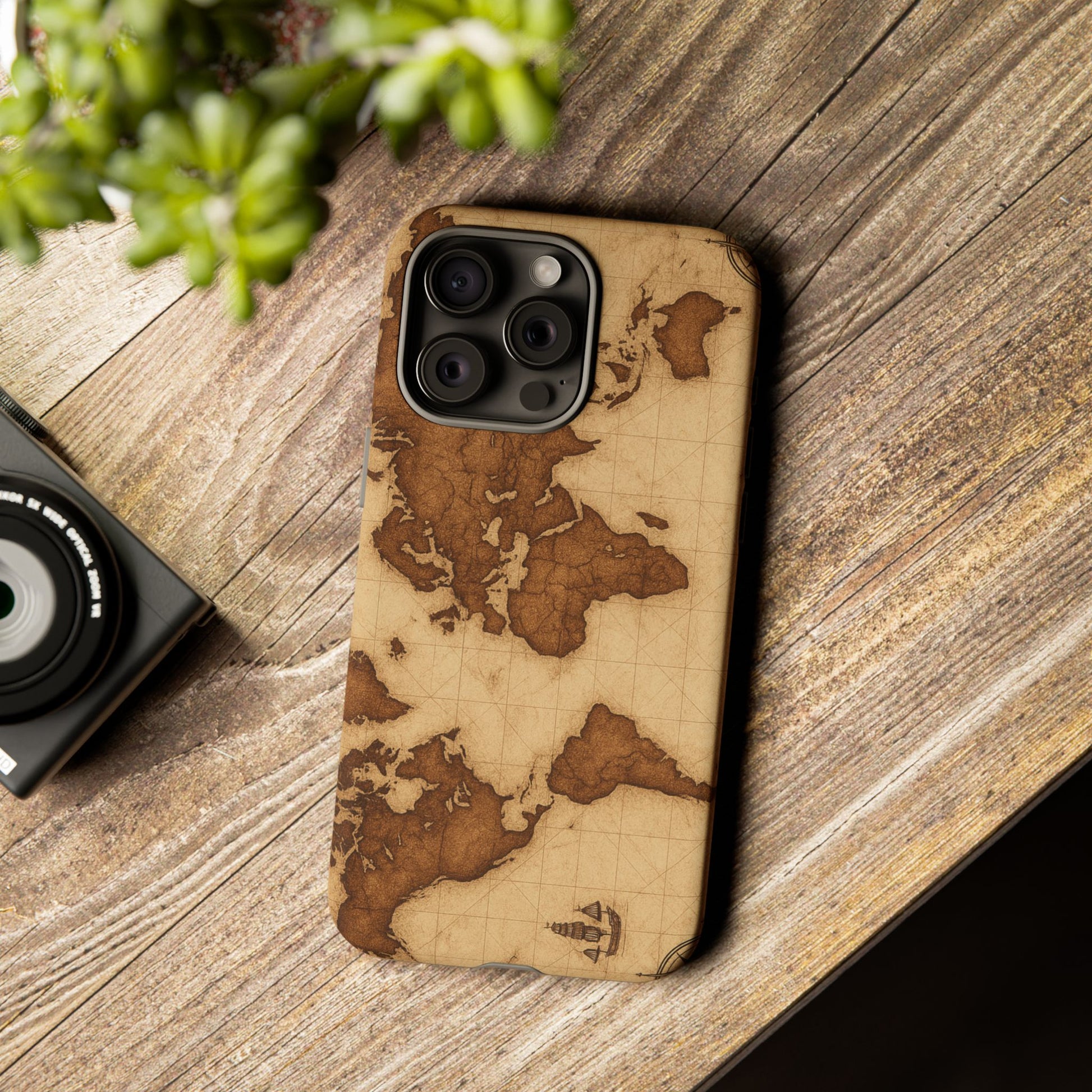 A phone case featuring a detailed world map design, perfect for travel enthusiasts and geography lovers. This durable and impact resistant case offers excellent protection against drops and tears, with a TPU silicone liner for shock absorption. Ideal for adults looking to protect their phones in style, this case is a great gift for birthdays, holidays, or as a treat for yourself.