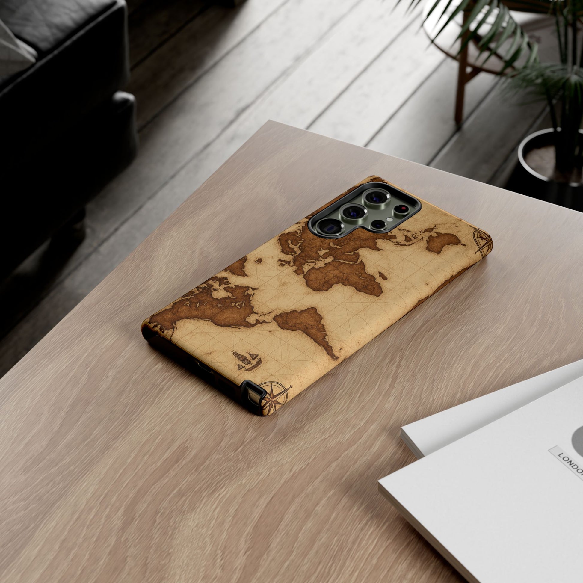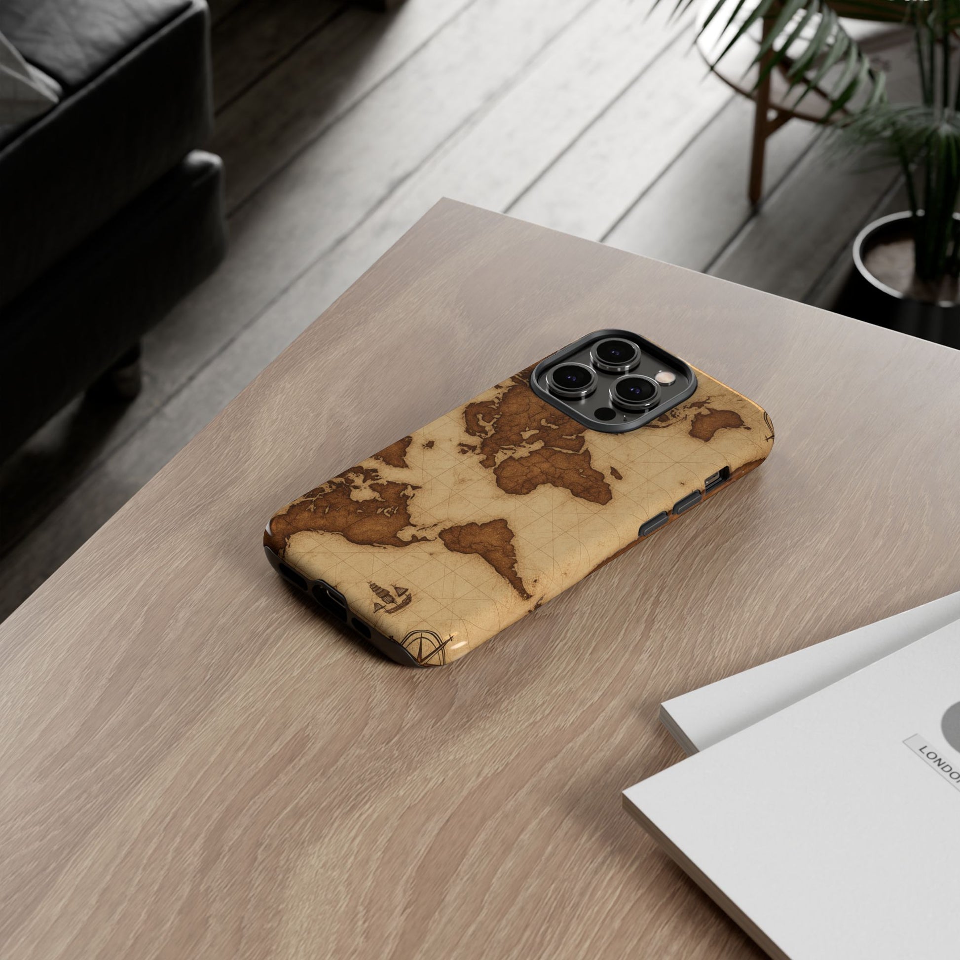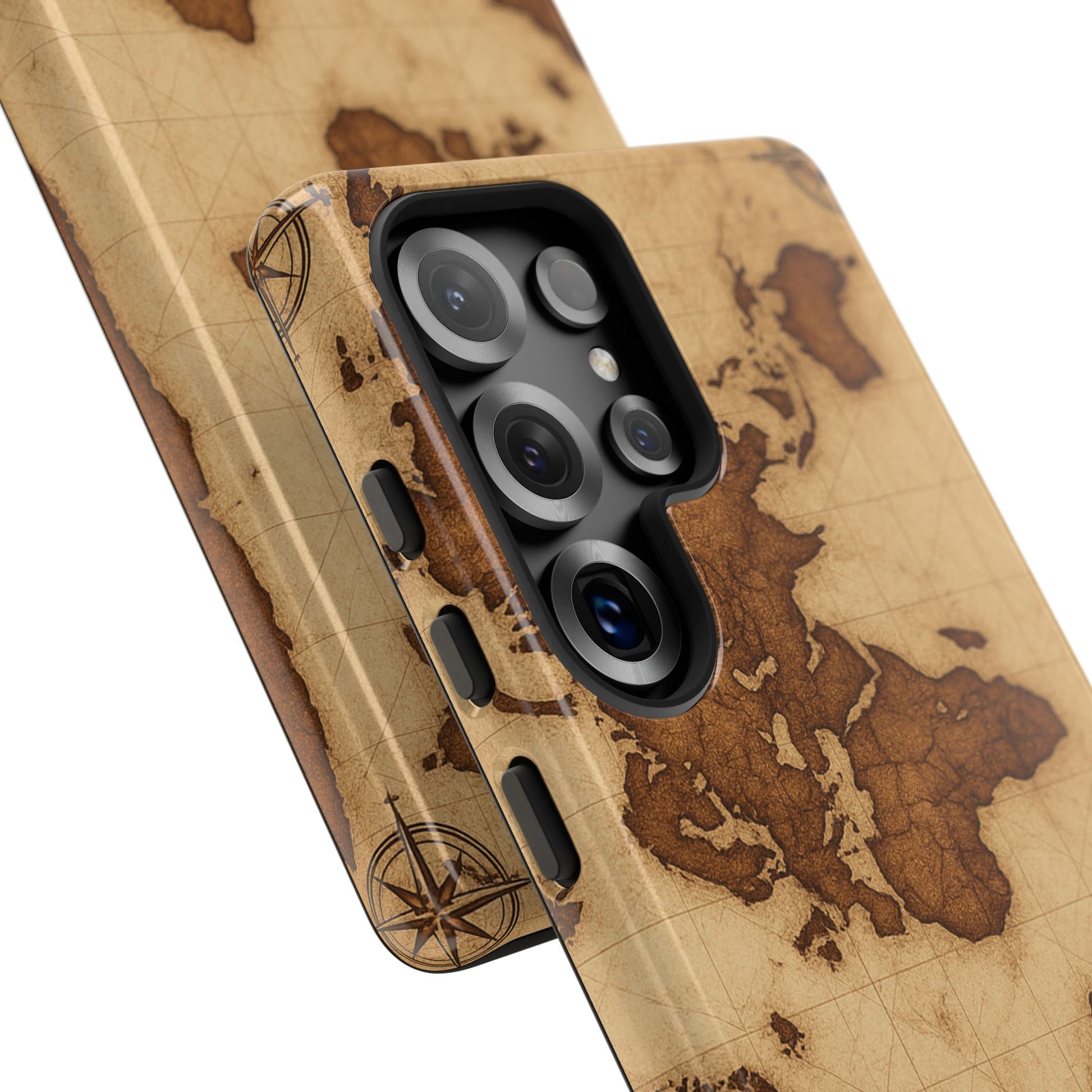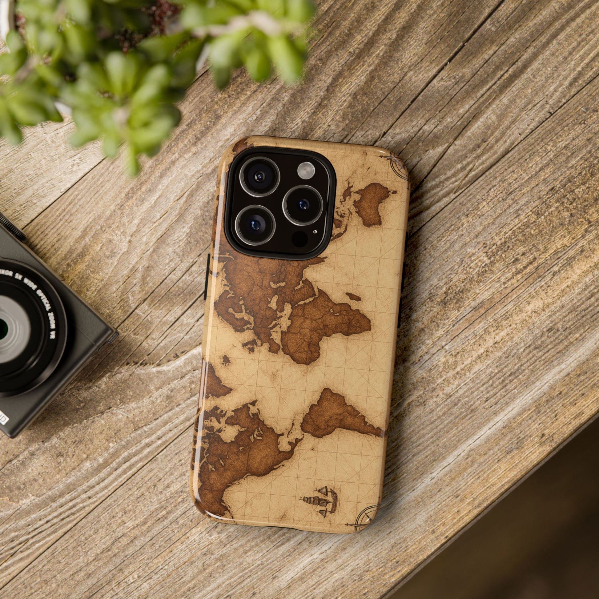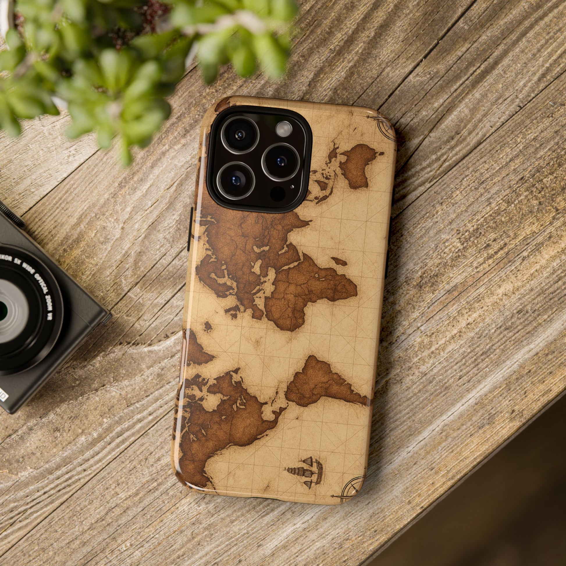 A phone case featuring a detailed world map design, perfect for travel enthusiasts and geography lovers. This durable and impact resistant case offers excellent protection against drops and tears, with a TPU silicone liner for shock absorption. Ideal for adults looking to protect their phones in style, this case is a great gift for birthdays, holidays, or as a treat for yourself.